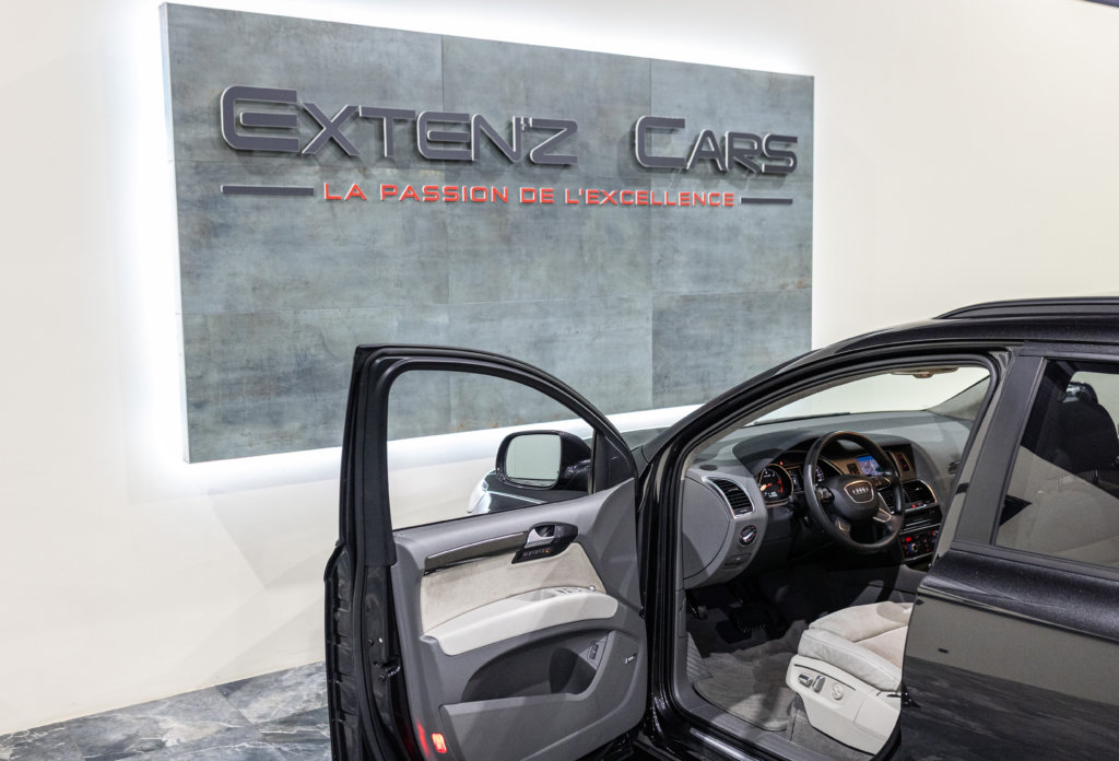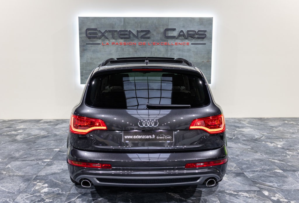 EXTEN’Z CARS a le plaisir de vous proposer cette superbe Audi Q7 4.2 V8 TDI 340 CV S-Line Quattro, mise en circulation le 25/04/2014, un grand SUV qui allie puissance, élégance et polyvalence. Une configuration exceptionnelle, portée par une motorisation devenue rare et recherchée : le V8 TDI 4.2 litres, développant 340 chevaux pour un couple de près de 760 Nm. Un moteur noble, plein de caractère, capable d’allier souplesse, force tranquille et endurance. Idéal pour les longs trajets, comme pour tracter sans le moindre effort. Une motorisation comme on n’en fait plus, saluée par les connaisseurs comme parfaitement adaptée au gabarit du Q7, alliant puissance maîtrisée et sonorité feutrée, typique des grands V8 diesel.