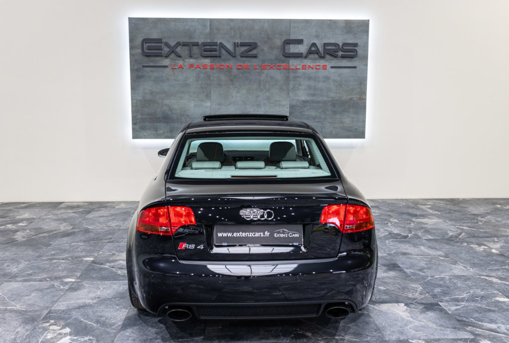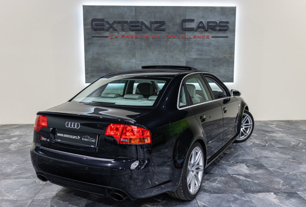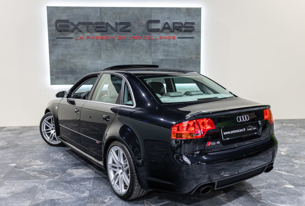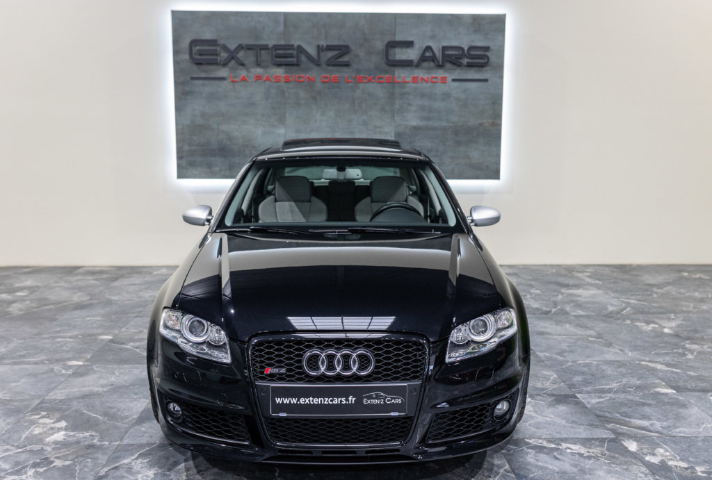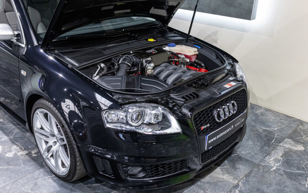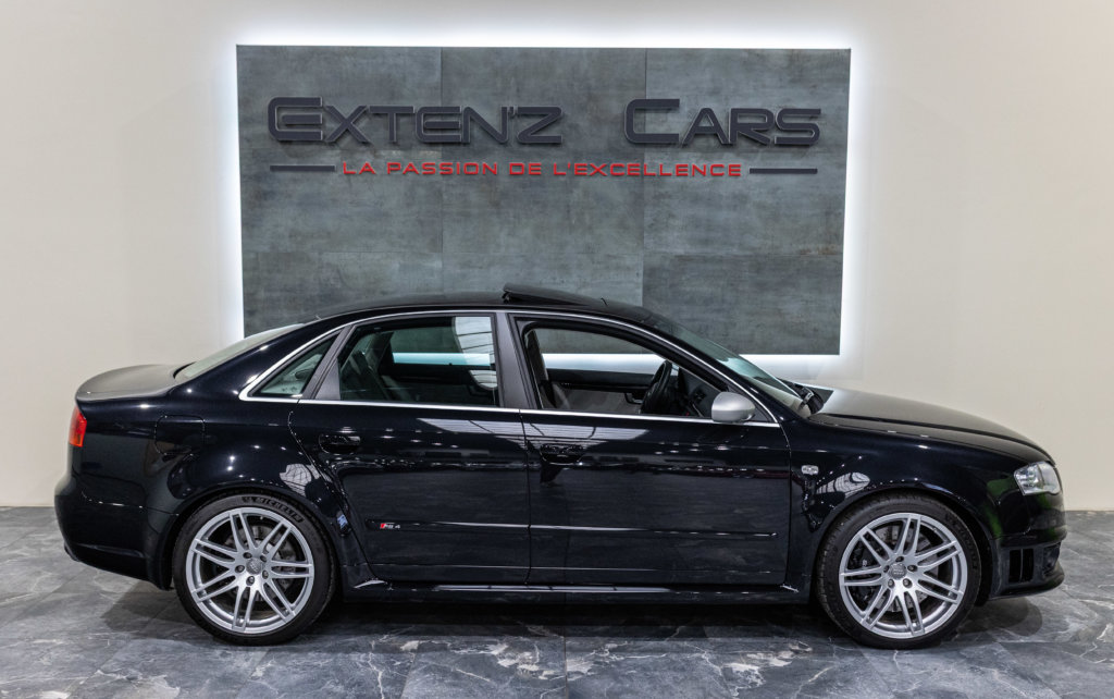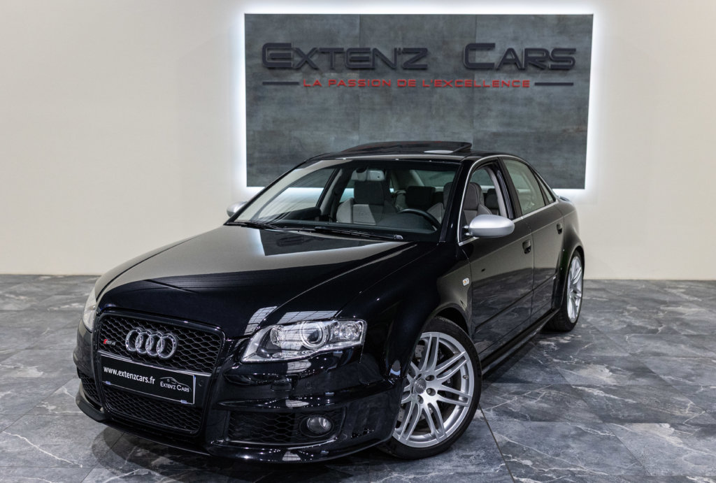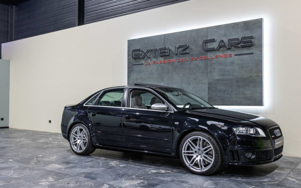 EXTEN’Z CARS vous propose une Audi RS4 B7 4.2 V8 FSI Quattro 420 CV, mise en circulation le 21/08/2008, une véritable voiture de passion issue d’une période très particulière chez Audi Sport. Développée par quattro GmbH, cette génération repose sur une mécanique atmosphérique noble, le V8 4.2 FSI, associé à la transmission intégrale Quattro et à un châssis spécifique qui ont largement contribué à la réputation de ce modèle.