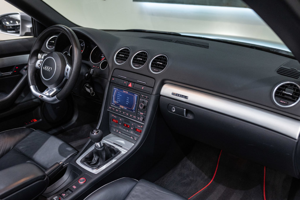 Dans cette version Cabriolet, la RS4 prend une dimension encore plus singulière. Le V8 atmosphérique peut ici s’exprimer à ciel ouvert, offrant une expérience de conduite unique mêlant performances, caractère mécanique et plaisir de conduite. La RS4 B7 Cabriolet occupe d’ailleurs une place encore plus particulière dans la gamme, avec seulement 1 507 exemplaires produits dans le monde, ce qui en fait aujourd’hui la déclinaison la plus rare de cette génération.