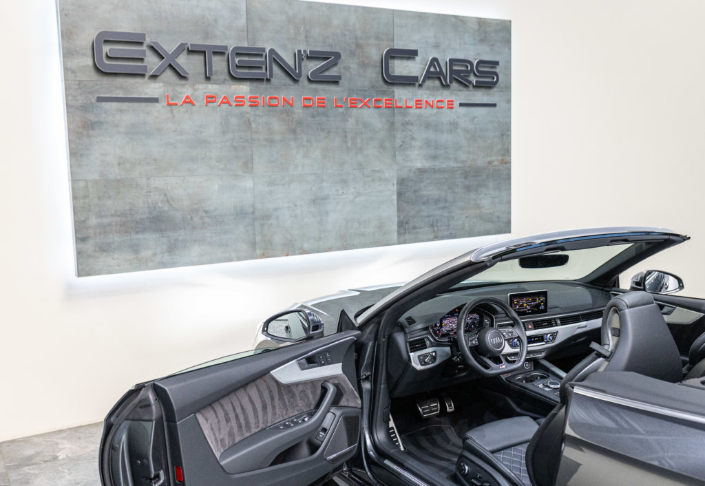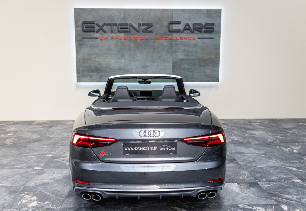 EXTEN’Z CARS vous propose cette superbe Audi S5 Cabriolet 3.0 V6 TFSI Quattro 354 CV (24cv), mise en circulation le 09/05/2018, dans une superbe teinte Gris Daytona nacré, qui met parfaitement en valeur ses lignes à la fois élégantes et sportives. Le S5 Cabriolet offre une vraie polyvalence, avec ce plaisir unique de