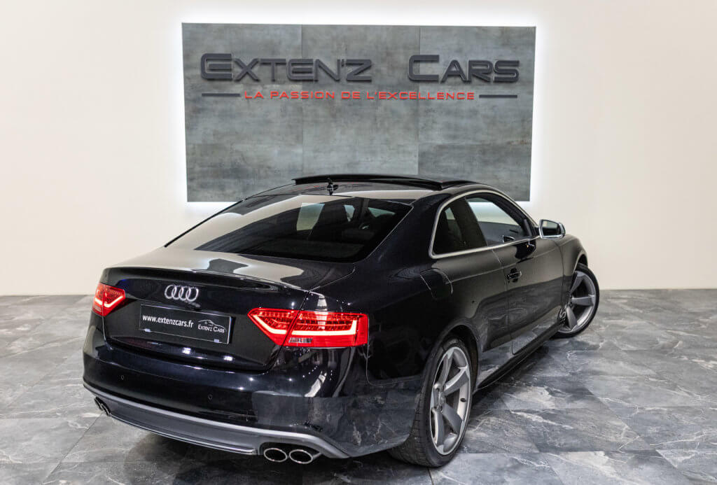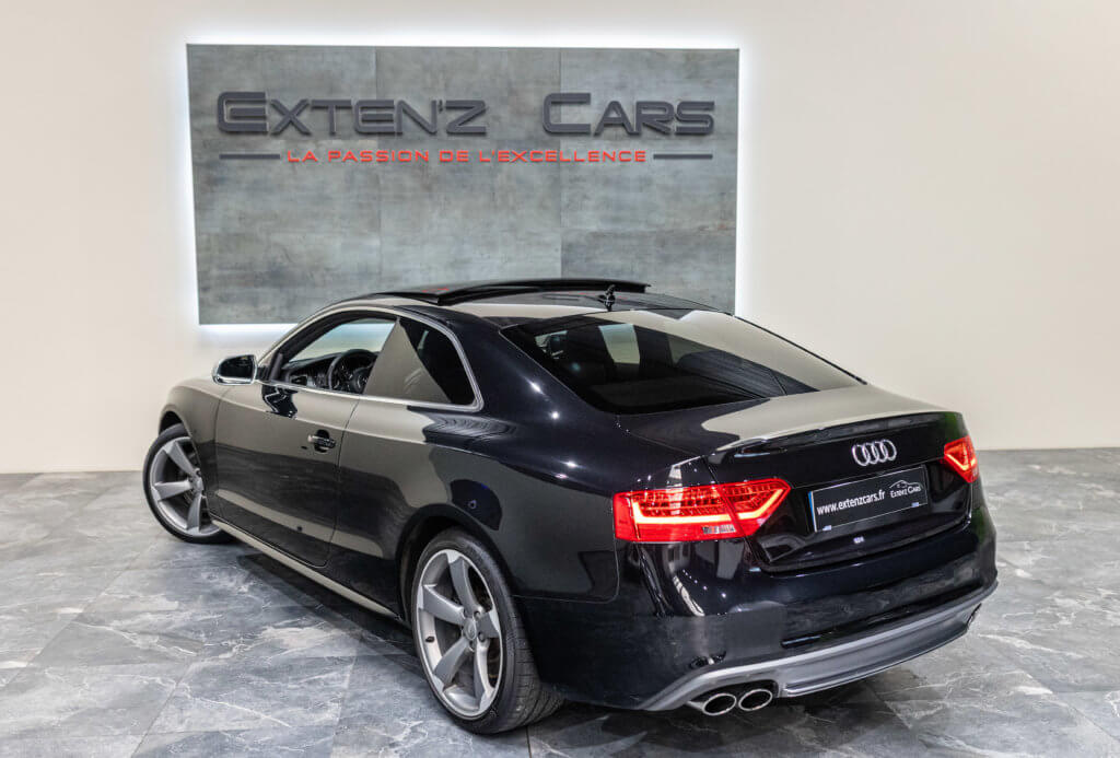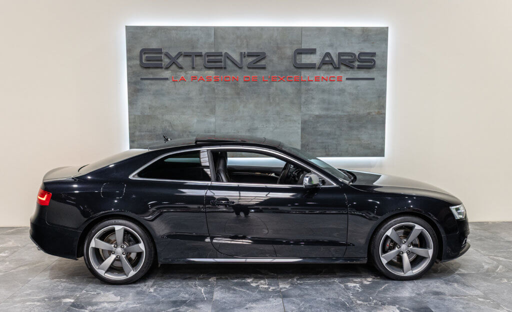 EXTEN’Z CARS vous propose cette magnifique AUDI S5 Coupé 3.0 V6 TFSI Quattro développant 333 CV (22cv) mise en circulation le 05/06/2012 de couleur Noir Fantôme Nacrée. Associée à une boîte à vitesse automatique S Tronic à 7 rapports. Cette Audi S5 allie l’élégance et la sportivité, une combinaison parfaite de performances de pointe et de raffinement. Une expérience de conduite captivante à bord de ce coupé au fort tempérament, chaque virage devient une danse avec l’asphalte, révélant la puissance et la passion qui sommeillent sous le capot.