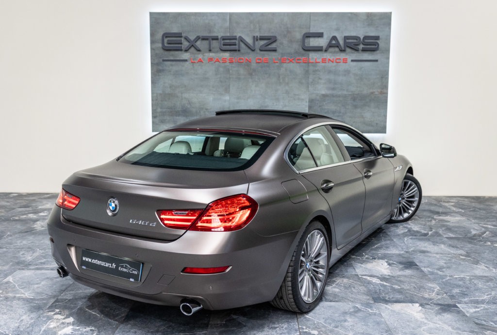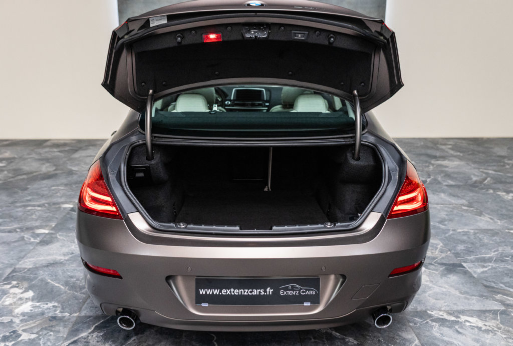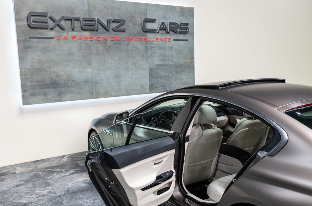 EXTEN’Z CARS vous propose cette BMW Série 6 Gran Coupé 640d (F06) Exclusive, une grande routière aussi élégante que performante. Mise en circulation le 15/02/2013, cette berline coupé quatre portes représente parfaitement l’esprit de la Série 6, un design élancé, un confort de haut niveau et une mécanique faite pour parcourir les kilomètres avec aisance. Sous le capot, on retrouve le six cylindres en ligne 3.0 diesel de 313 CV (20cv), réputé pour sa fiabilité, son couple généreux et sa capacité à offrir des performances solides tout en restant remarquablement efficient. Associé à la boîte automatique 8 rapports, l’ensemble délivre une conduite fluide, souple et parfaitement adaptée aux longs trajets.