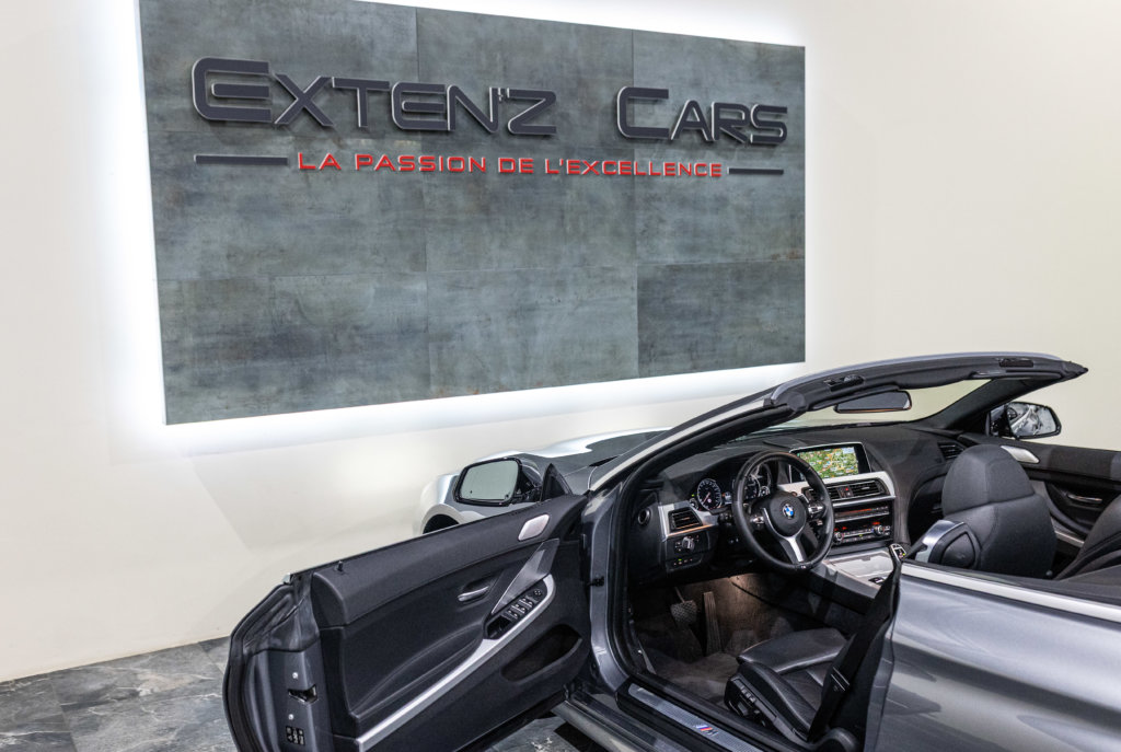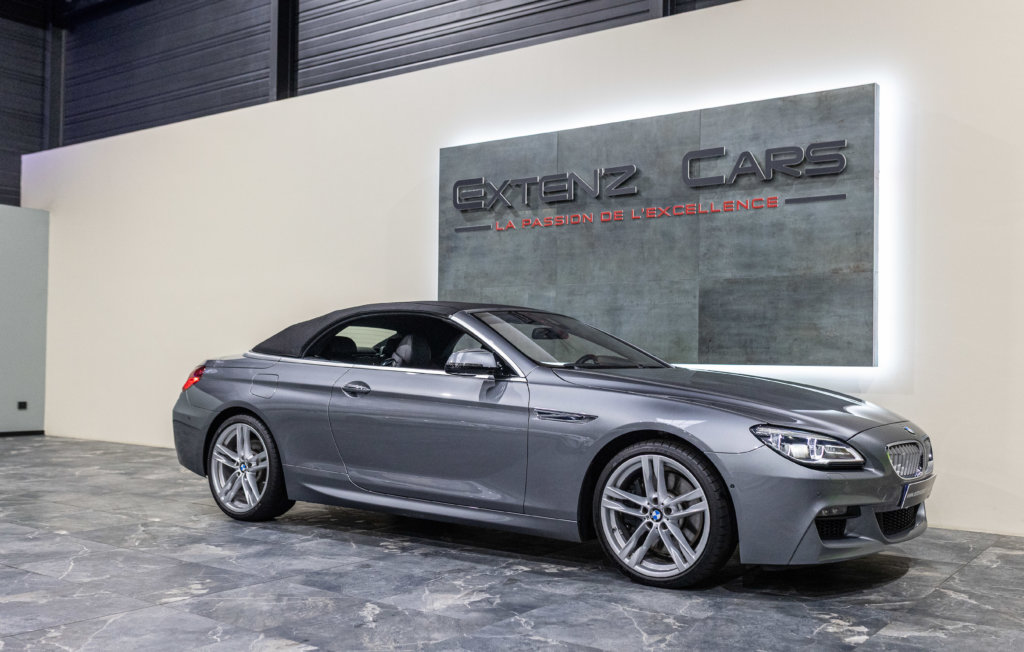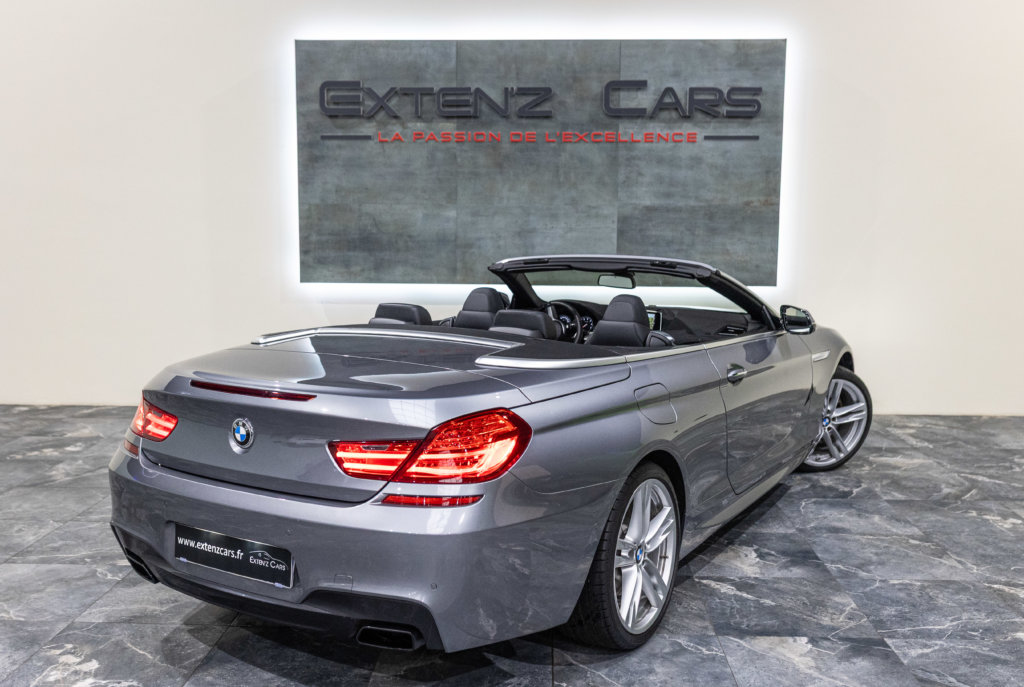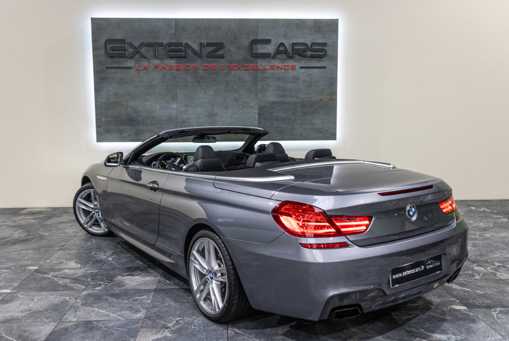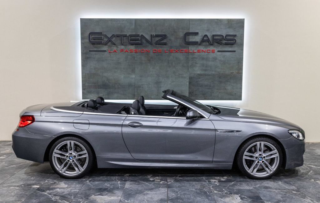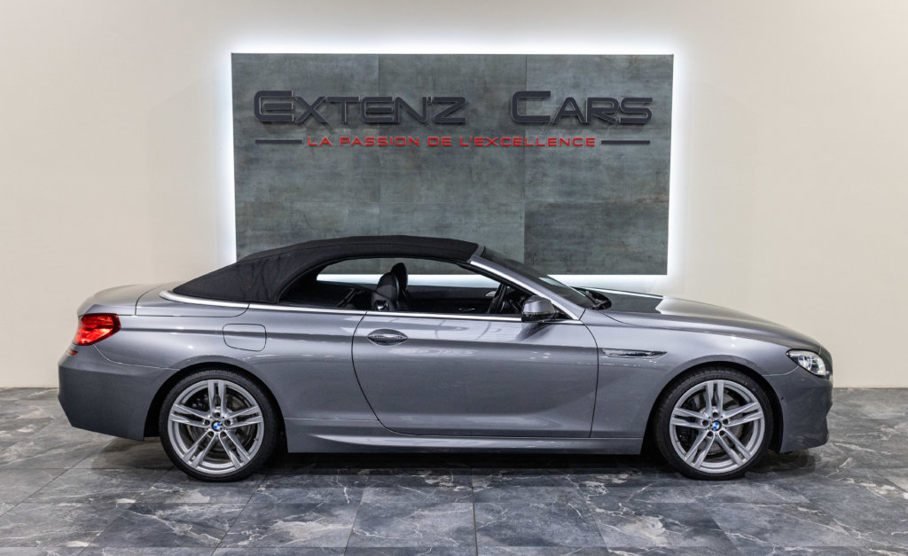 EXTEN’Z CARS vous propose cette séduisante BMW Série 6 Cabriolet 650i (F12) LCI xDrive Pack M qui ne laisse clairement pas indifférent. Mise en circulation le 06/07/2015, cette grande GT cache sous son long capot le somptueux V8 4.4L biturbo de 450 chevaux (34cv) et 650 Nm, une mécanique pleine de caractère, à la fois douce en conduite tranquille et terriblement efficace dès qu’on sollicite l’accélérateur. Associée à la boîte automatique 8 rapports, la poussée est linéaire, puissante, sans brutalité — exactement ce qu’on attend d’une vraie BMW de prestige. À bord, on retrouve une atmosphère typiquement BMW : cuir, finition haut de gamme, poste de conduite orienté conducteur, sensation de solidité et confort de grande routière. C’est une voiture faite pour avaler les kilomètres avec classe, mais aussi pour se faire plaisir à chaque démarrage. Sa teinte Gris Spatial Métallisée (code A52) sublime les lignes tendues et élégantes de la Série 6, tandis que la capote ouverte transforme chaque trajet en moment privilégié : le son du V8, le confort, la route… tout prend une autre dimension.