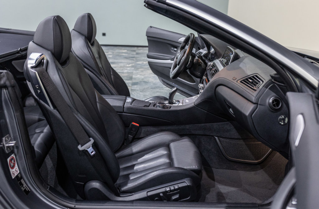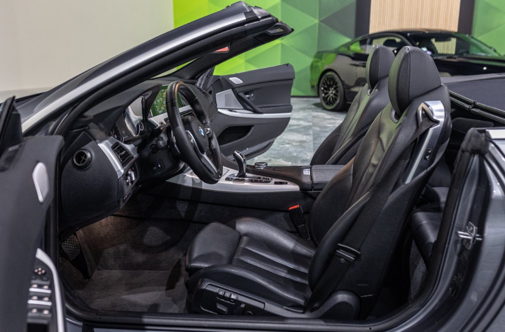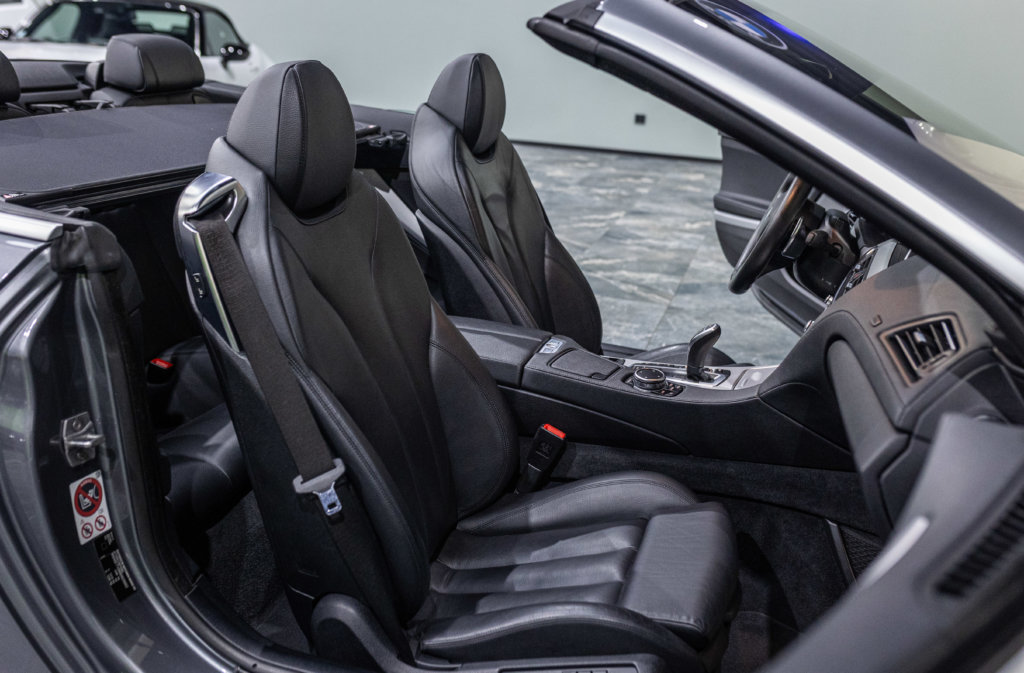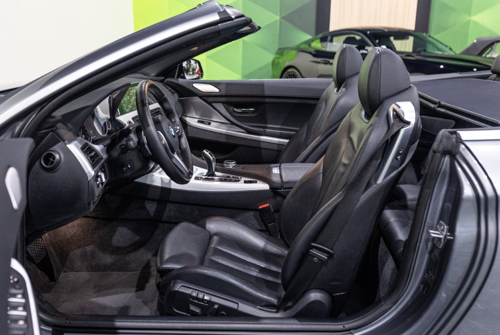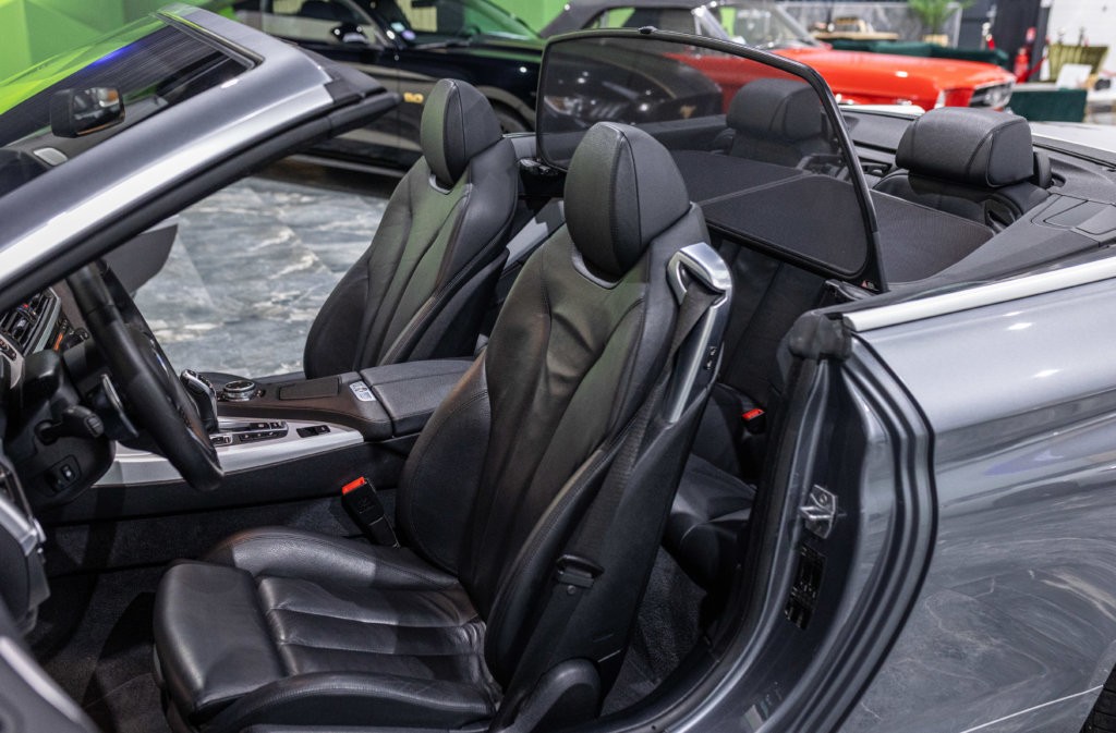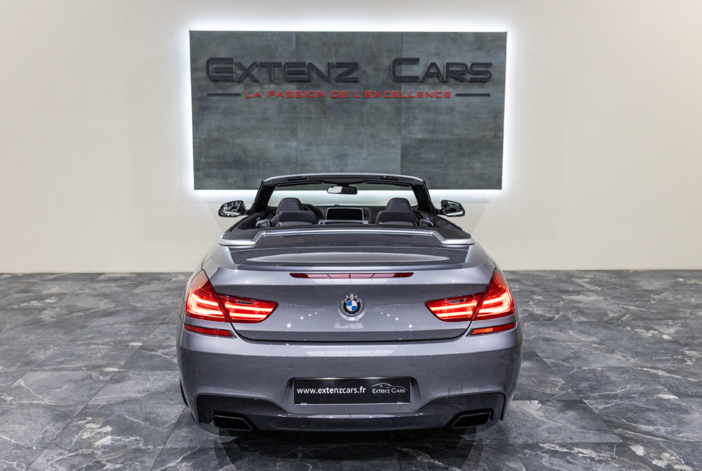 EXTEN’Z CARS vous propose cette séduisante BMW Série 6 Cabriolet 650i (F12) LCI xDrive Pack M qui ne laisse clairement pas indifférent. Mise en circulation le 06/07/2015, cette grande GT cache sous son long capot le somptueux V8 4.4L biturbo de 450 chevaux (34cv) et 650 Nm, une mécanique pleine de caractère, à la fois douce en conduite tranquille et terriblement efficace dès qu’on sollicite l’accélérateur. Associée à la boîte automatique 8 rapports, la poussée est linéaire, puissante, sans brutalité — exactement ce qu’on attend d’une vraie BMW de prestige. À bord, on retrouve une atmosphère typiquement BMW : cuir, finition haut de gamme, poste de conduite orienté conducteur, sensation de solidité et confort de grande routière. C’est une voiture faite pour avaler les kilomètres avec classe, mais aussi pour se faire plaisir à chaque démarrage. Sa teinte Gris Spatial Métallisée (code A52) sublime les lignes tendues et élégantes de la Série 6, tandis que la capote ouverte transforme chaque trajet en moment privilégié : le son du V8, le confort, la route… tout prend une autre dimension.