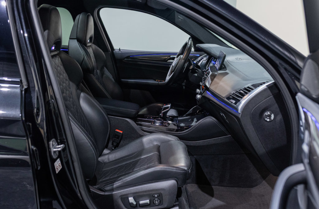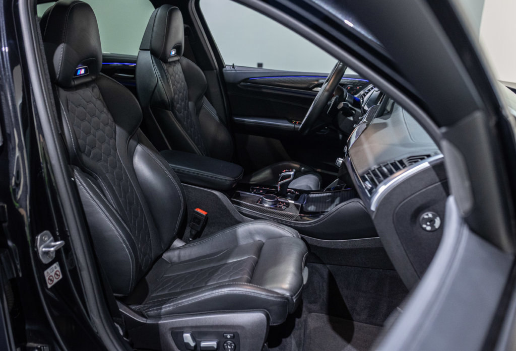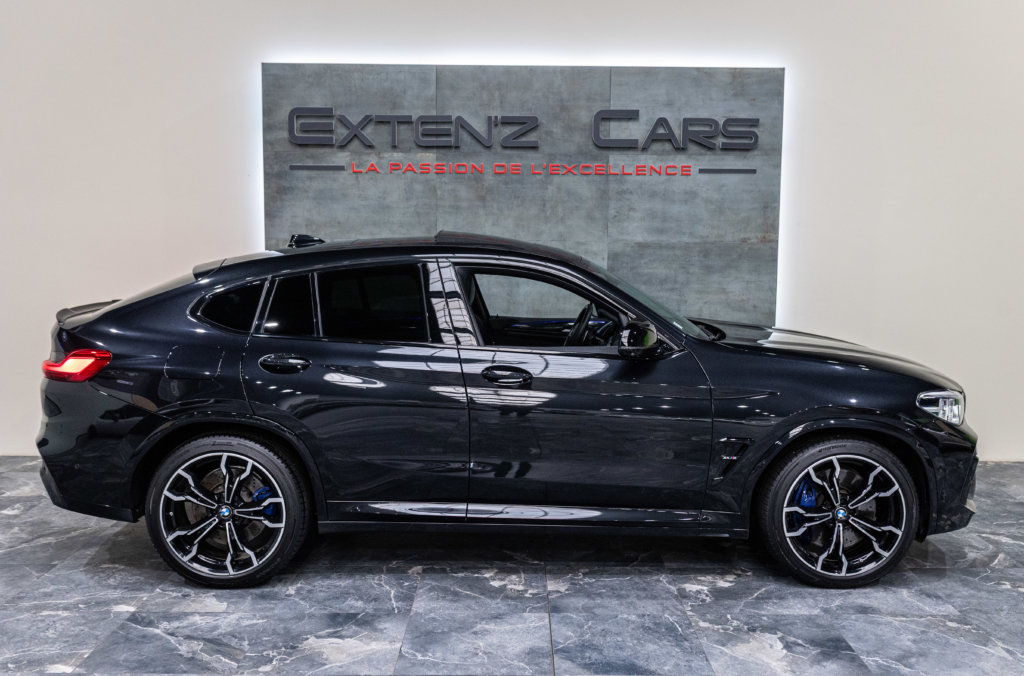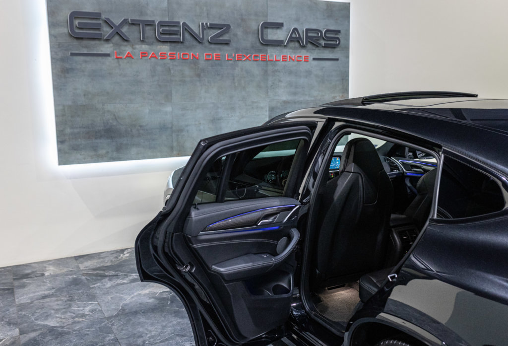 EXTEN’Z CARS vous propose ce BMW X4 M Competition F98 510 CV (41cv), mis en circulation le 13/12/2019, un SUV coupé à la personnalité forte, dans une configuration élégante et sportive en Noir Saphir métallisé. Ce modèle s’adresse à ceux qui veulent tout à la fois, le look, la présence, le confort, la sécurité et la performance, sans avoir à choisir entre une voiture plaisir et une voiture de tous les jours. Le X4 M Competition séduit par sa ligne, sa position de conduite haute et rassurante, et par cette sensation de solidité typique des SUV, tout en offrant des performances largement au-dessus de la moyenne. Son six cylindres en ligne BMW, réputé pour sa fiabilité et son agrément, sait se montrer souple, discret et confortable en conduite normale, avec un comportement parfaitement compatible avec un usage quotidien. La boîte automatique et la transmission intégrale xDrive apportent une vraie