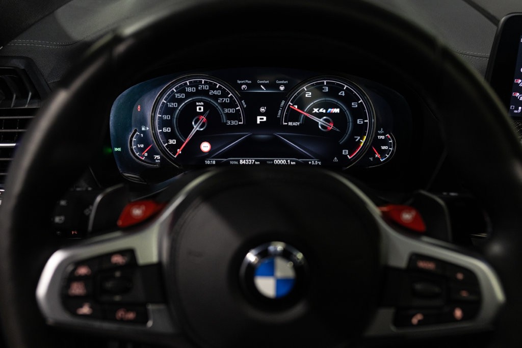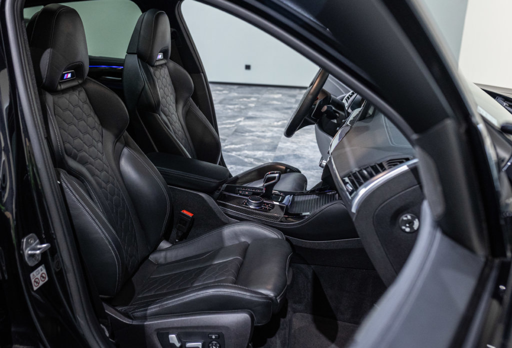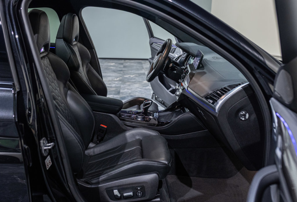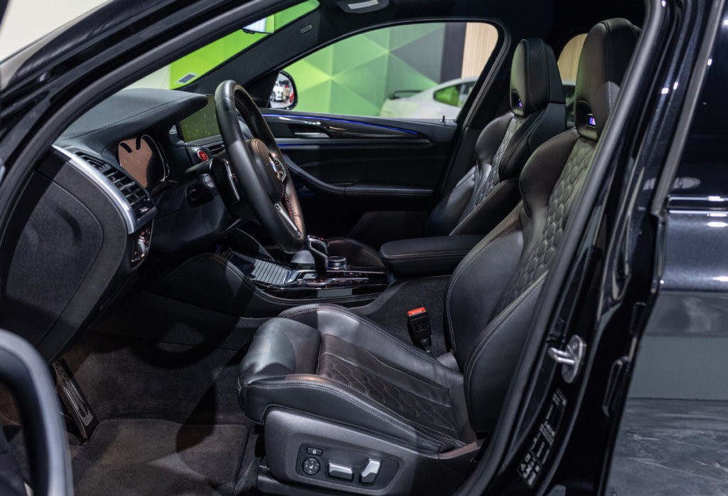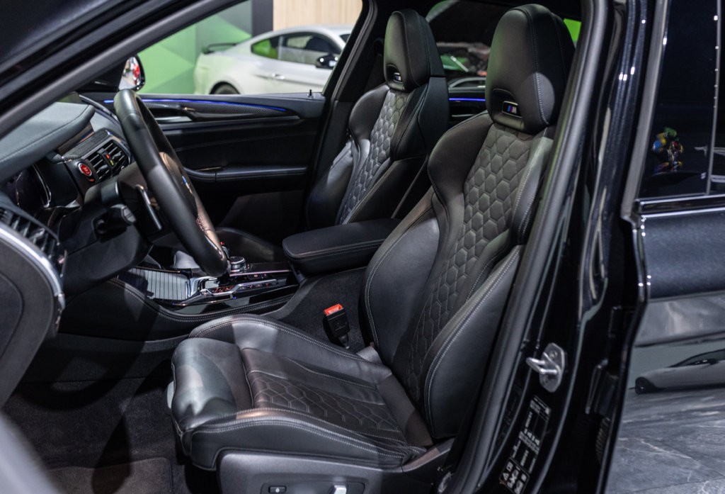 EXTEN’Z CARS vous propose ce BMW X4 M Competition F98 510 CV (41cv), mis en circulation le 13/12/2019, un SUV coupé à la personnalité forte, dans une configuration élégante et sportive en Noir Saphir métallisé. Ce modèle s’adresse à ceux qui veulent tout à la fois, le look, la présence, le confort, la sécurité et la performance, sans avoir à choisir entre une voiture plaisir et une voiture de tous les jours. Le X4 M Competition séduit par sa ligne, sa position de conduite haute et rassurante, et par cette sensation de solidité typique des SUV, tout en offrant des performances largement au-dessus de la moyenne. Son six cylindres en ligne BMW, réputé pour sa fiabilité et son agrément, sait se montrer souple, discret et confortable en conduite normale, avec un comportement parfaitement compatible avec un usage quotidien. La boîte automatique et la transmission intégrale xDrive apportent une vraie
