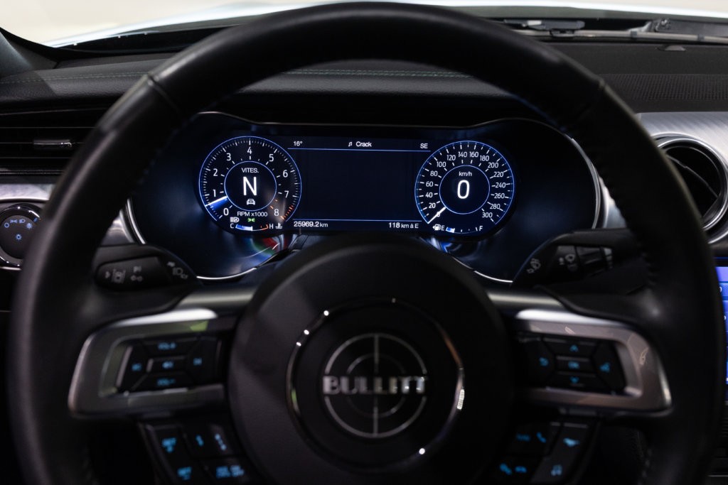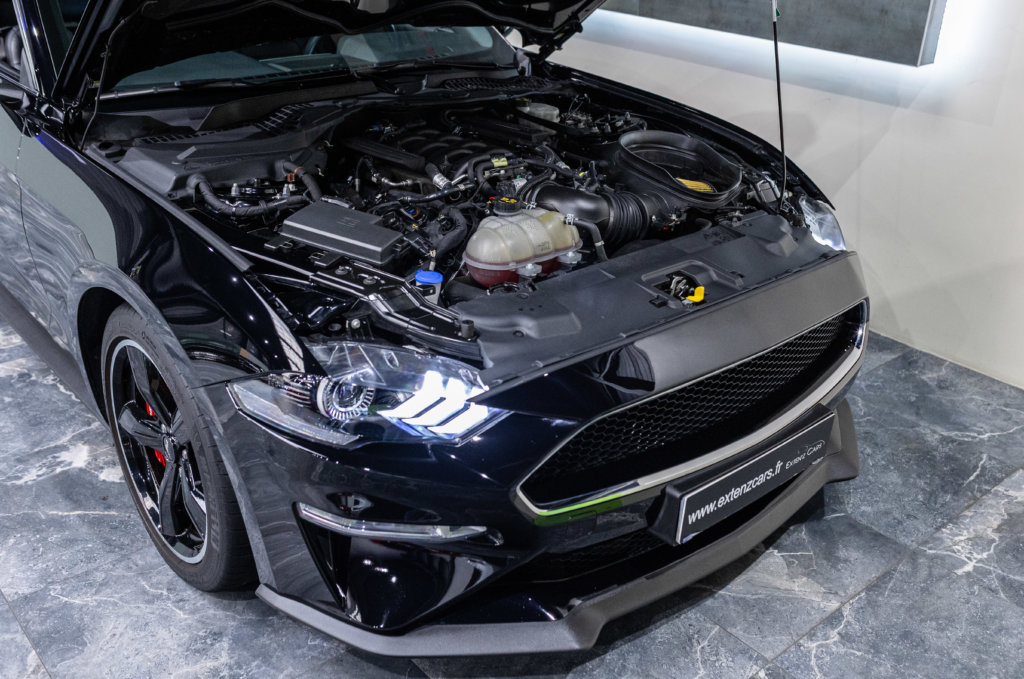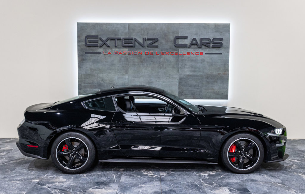 EXTEN’Z CARS vous propose cette séduisante et rare MUSTANG Série Limitée numérotée L0619 Ford Mustang BULLITT avec son fantastique V8 5.0 Atmosphérique développant 460 CV (37cv), mise en circulation le 16/12/2019 de couleur Noir Shadow couplé a une boite de vitesse mécanique à 6 rapports avec son pommeau façon boule de billard rappel au modèle conduit par Steve McQueen dans le film BULLITT. Comme dans le film, la calandre est vidée de son cheval Mustang, lui rendant un air plus méchant. De fait, la seule inscription présente sur la voiture est tout simplement BULLITT au milieu du coffre. Fabriquée en exemplaire limité cela en fait a coup sûr une future Légende.