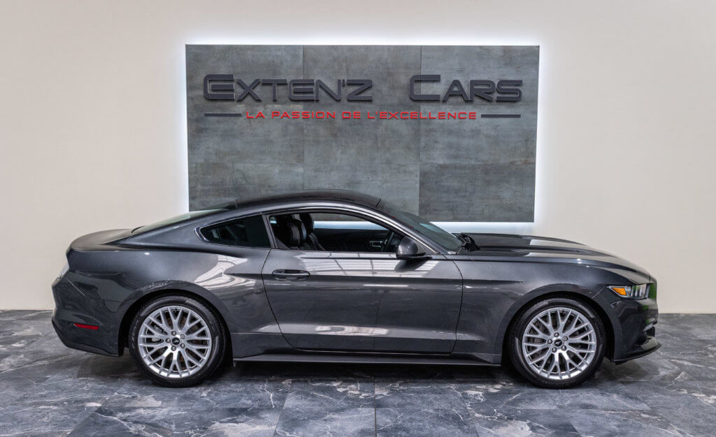 EXTEN’Z CARS vous propose cette séduisante Ford Mustang Fastback 2.3 Ecoboost développant 317 CV (21 cv), mise en circulation le 23/03/2016. Cette MUSTANG distille beaucoup de plaisir à ses occupants tout en offrant un rapport prix/plaisir. En particulier sa silhouette bodybuildée, la position de conduite est parfaite et on peut admirer devant soi le long capot bosselé. Prendre les commandes d’un tel engin, aussi imposant par le gabarit que par son histoire, génère des sensations extraordinaires.