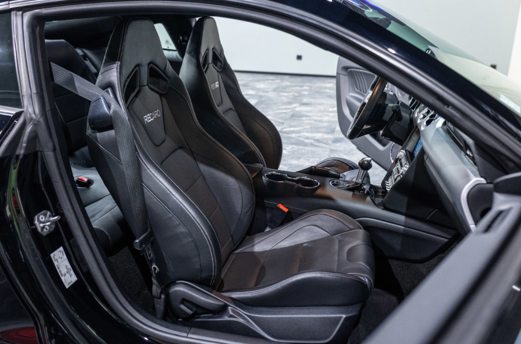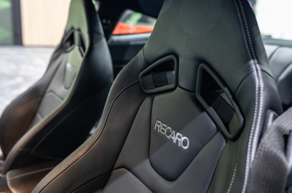 – Sellerie RECARO Cuir Noir avec Broderie RECARO Blanche et Surpiqures Blanche
