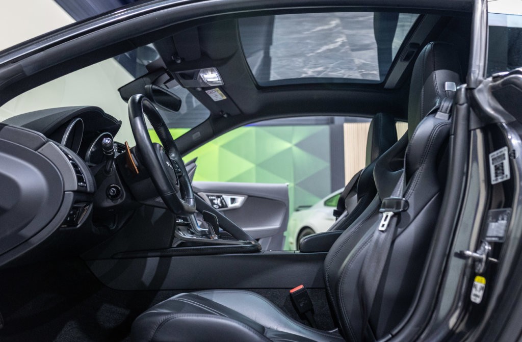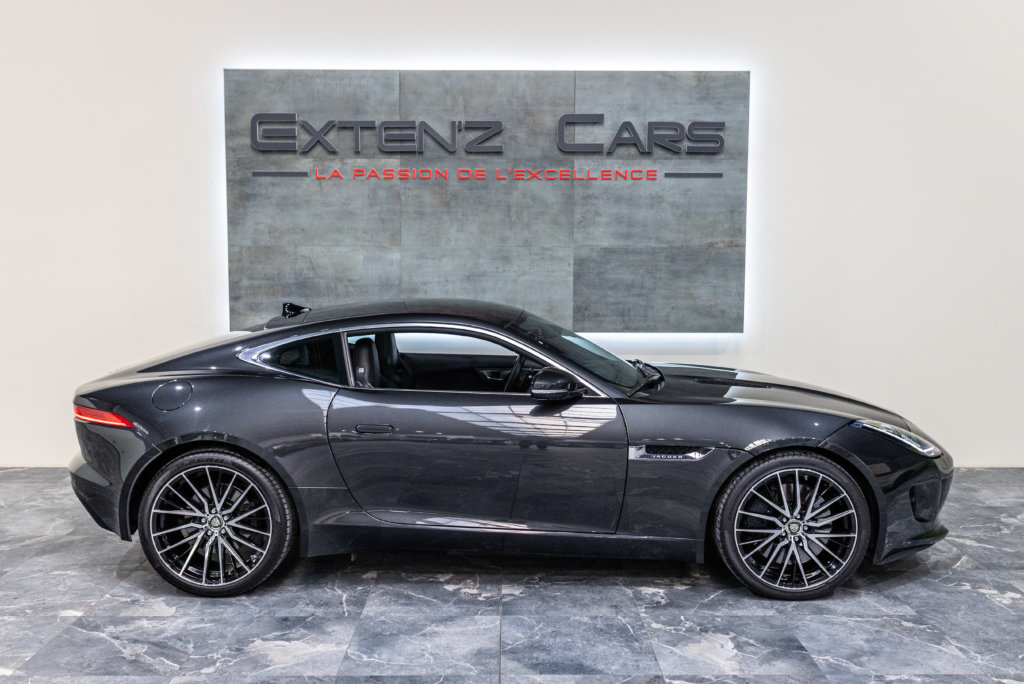 EXTEN’Z CARS vous propose cette magnifique JAGUAR F-Type Coupé 3.0 V6 S développant 380 CV (27cv) mise en circulation le 30/04/2014 de couleur Stratus Grey Métallisée. Séduisante à l’extérieur, la Jaguar F-Type l’est tout autant à son bord. Le style est très exclusif, mais aussi très épuré, La position de conduite est irréprochable, d’autant que les sièges offrent de multiples réglages. La Jaguar F-Type est motorisée par un V6 3,0 litres suralimenté de 380 ch. C’est la première fois qu’un V6 aura autant flatté nos tympans. Bien aidée par sa boîte automatique à 8 rapports. Structure en aluminium, liaisons au sol allégées, et mécaniques affûtées sont au programme. Poignée de maintien destinée au passager, bouton de mode Sport typé aviation, Le travail est abouti.