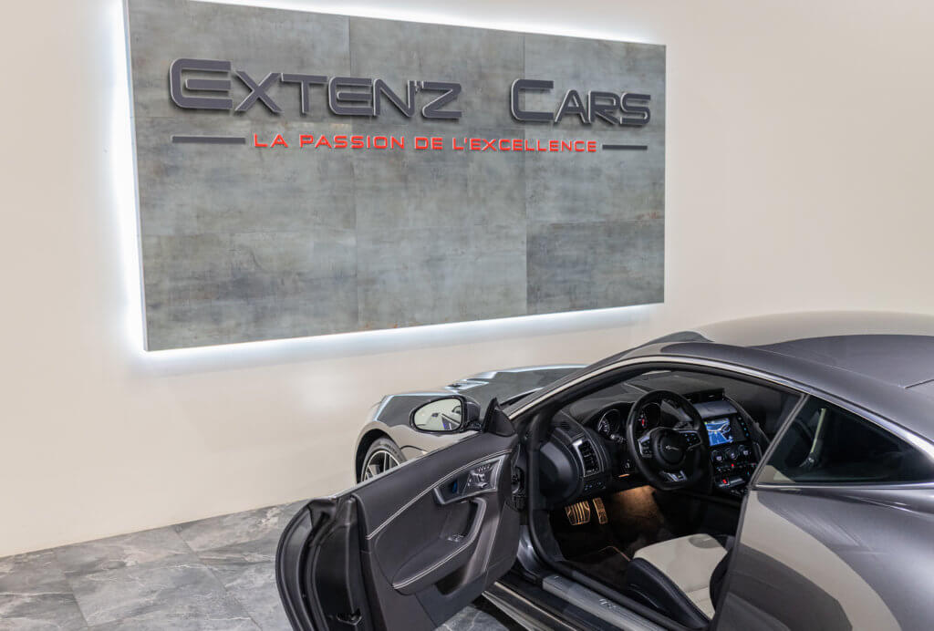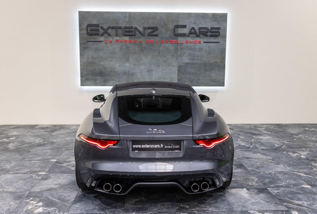 EXTEN’Z CARS vous propose une magnifique JAGUAR F-Type R AWD (Phase II) motorisée par le 5.0 V8 compressé de 550 CV (47cv), dans sa robe Corris Grey Métallisée avec un intérieur cuir bi-ton Noir & Ivory. Une alliance sobre, racée, intemporelle — parfaitement en phase avec le caractère affirmé de cette GT britannique. Son V8 suralimenté délivre un couple généreux et une sonorité unique : grave, profonde, noble. C’est une mécanique de caractère, plaisante au quotidien, mais capable de transformer chaque trajet en moment d’émotion. Le tout porté par une boîte à 8 rapports, douce et réactive. Elle s’adresse à ceux qui cherchent une vraie voiture de passion, bien née, bien conservée, et encore pleine de vie.