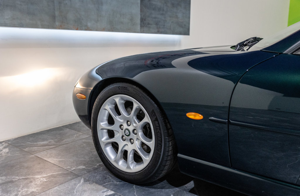 Une Jaguar élégante et intemporelle, offrant tout le charme des grandes GT britanniques, avec une configuration de couleur particulièrement réussie.