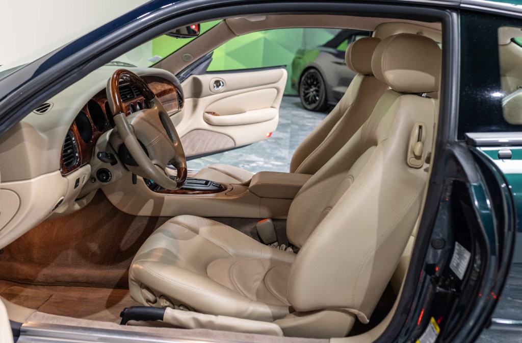 EXTENZ CARS vous propose cette Jaguar XK8 Coupé 4.0 V8, une véritable grand tourisme à l’anglaise, mêlant élégance, confort et noblesse mécanique. Mise en circulation le 10/12/2001, cette XK8 se présente dans une superbe teinte Emerald Green Metallic (code HGG), un vert profond et raffiné, particulièrement emblématique de l’esprit Jaguar, mettant parfaitement en valeur ses lignes fluides et intemporelles. À bord, on retrouve tout le savoir-faire Jaguar de l’époque, avec une ambiance chaleureuse mêlant cuir beige et boiseries en noyer aux nuances légèrement rosées. Une association de couleurs typiquement britannique, élégante et intemporelle, qui confère à l’ensemble un charme unique. Sous le capot, le V8 4.0 litres (AJ27, version fiabilisée des premiers V8 Jaguar) développe 284 CV (20cv), offrant une conduite souple, feutrée et toujours agréable, fidèle à l’esprit des grandes GT britanniques.