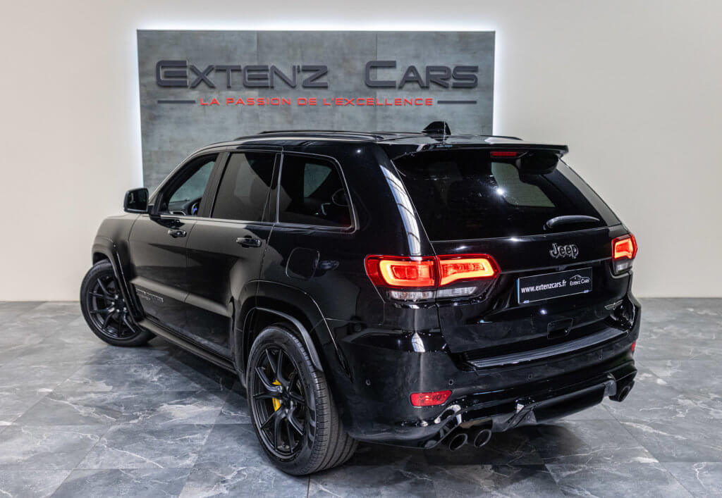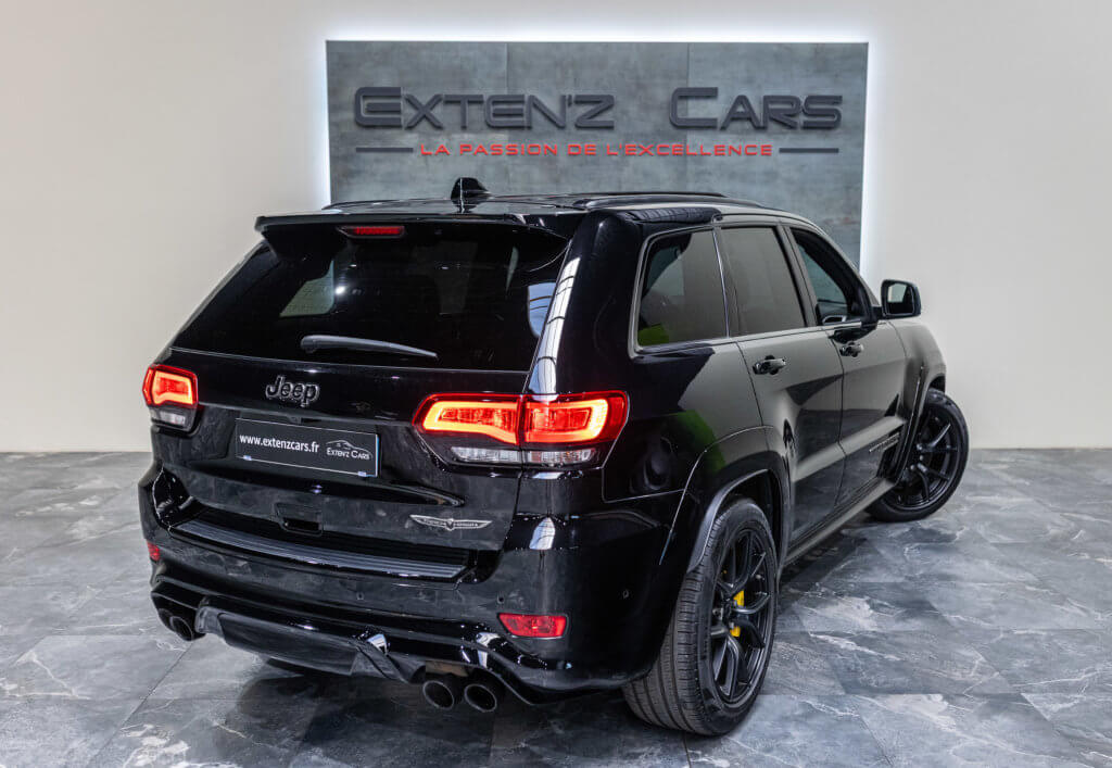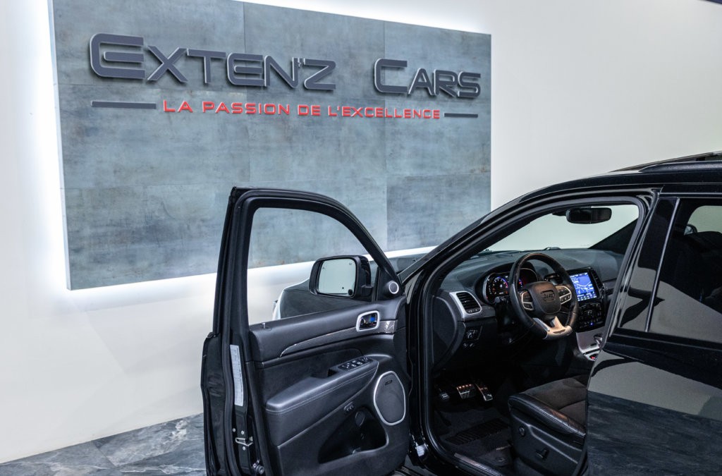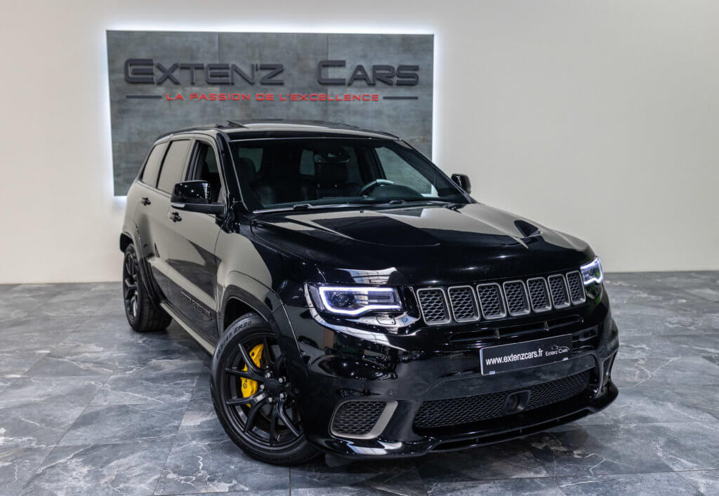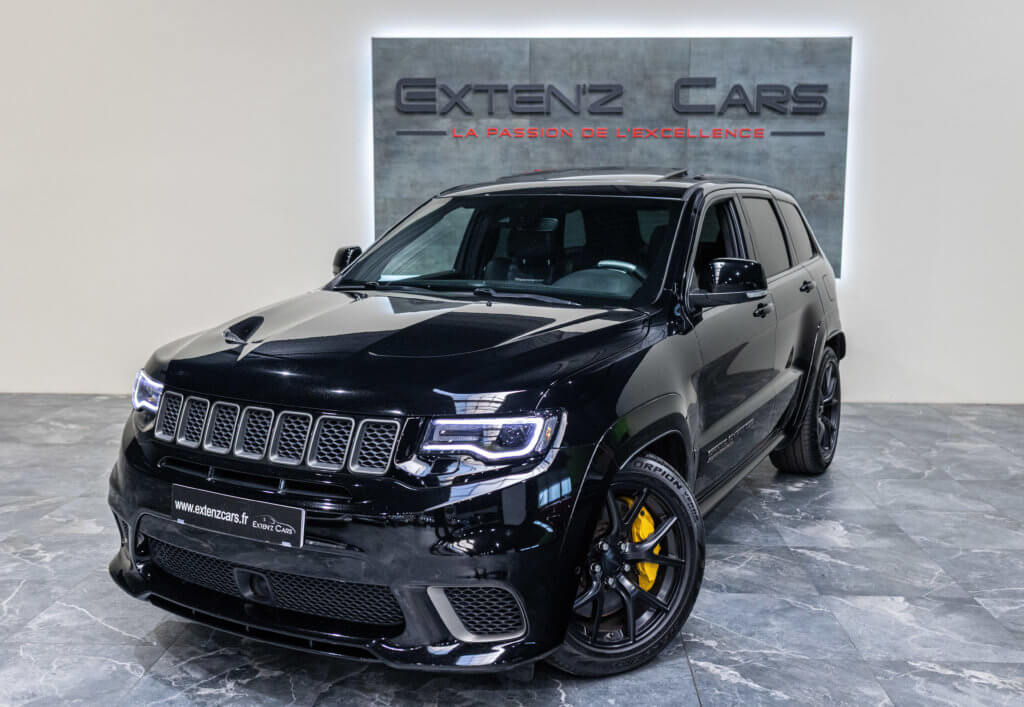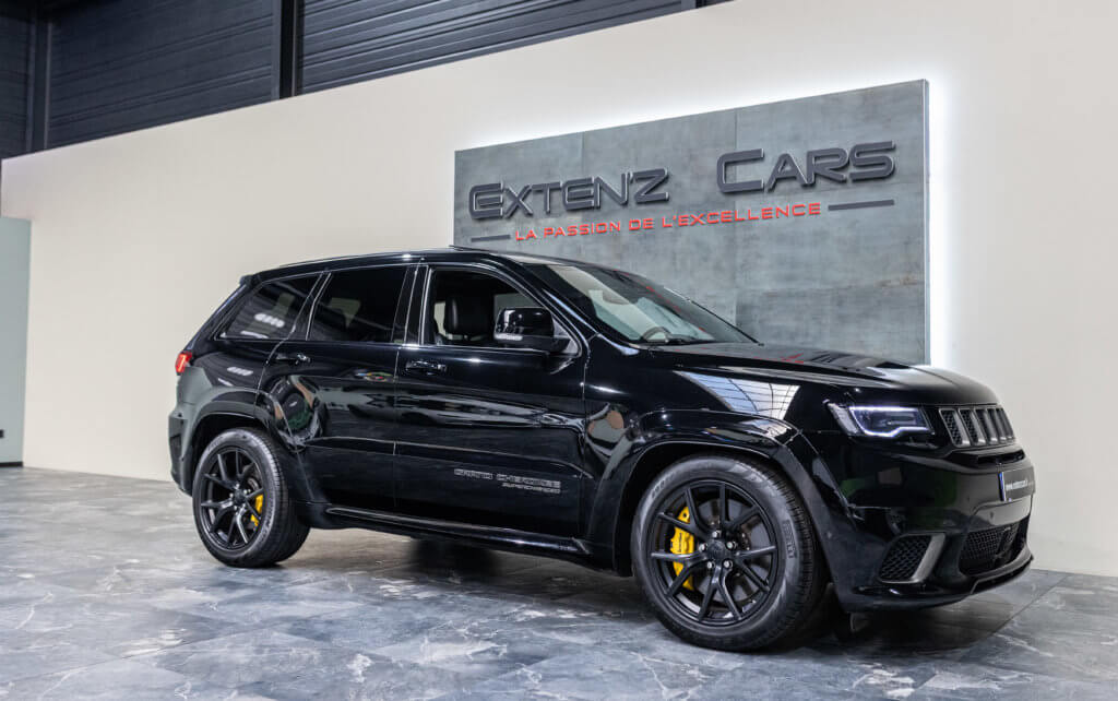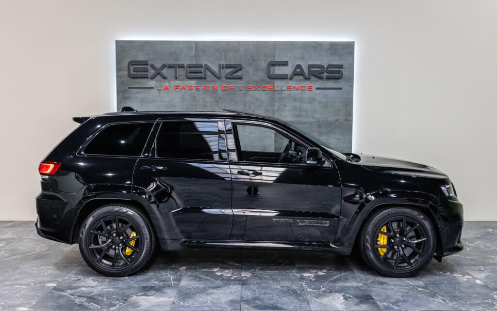 EXTEN’Z CARS vous propose ce magnifique et rare Jeep Grand Cherokee Trackhawk 6.2 V8 HEMI Supercharged de 710 CV (70CV), l’un des SUV le plus puissant au monde. Mis en circulation le 13/08/2019, dans sa sublime couleur Diamond Black Crystal Pearl, couplée à une boîte automatique ZF à 8 rapports. Au cœur de ce monstre se trouve le fameux V8 HEMI 6.2 litres, boosté par un compresseur volumétrique. Ce moteur exceptionnel délivre 710 chevaux et un couple impressionnant de 868 Nm, propulsant ce SUV de 0 à 100 km/h en seulement 3,5 secondes, une performance digne des meilleures supercars. Trackhawk : Le faucon des routes, indomptable et légendaire.