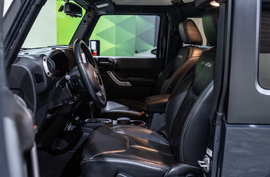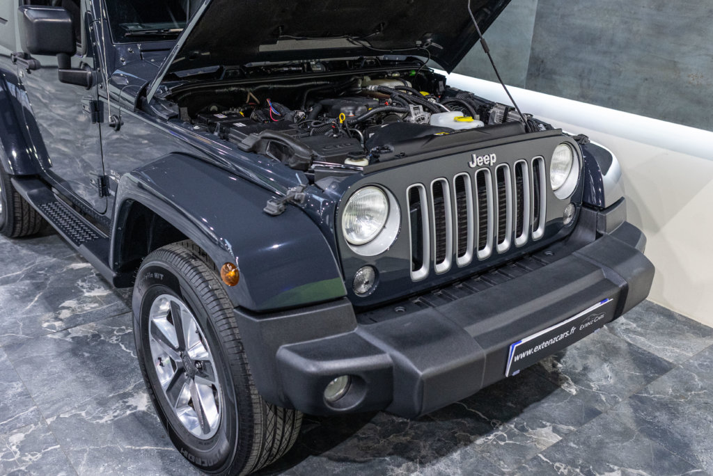 EXTEN’Z CARS vous propose ce superbe Jeep Wrangler JK SAHARA 2.8 CRD quidélivre 200 CV (12CV), mise en circulation le 13/09/2017 de couleur Gris Rhino. Véritable pilier de l’automobile depuis des décennies, l’une des dernières autos au style intemporel, Sa carrure et son côté très masculin rassurent, et l’ensemble lui confère comme une sorte d’autorité naturelle sur la route. Le Wrangler demeure une référence en matière de tout-terrain. Neige, sable, boue… rien ou presque ne lui fait peur, pas même les longues épreuves routières. Le Wrangler Sahara, c’est le plaisir et l’aventure sans compromis. Son toit amovible permet de profiter du plaisir unique d’un cabriolet tout-terrain, offrant une liberté absolue à chaque sortie.