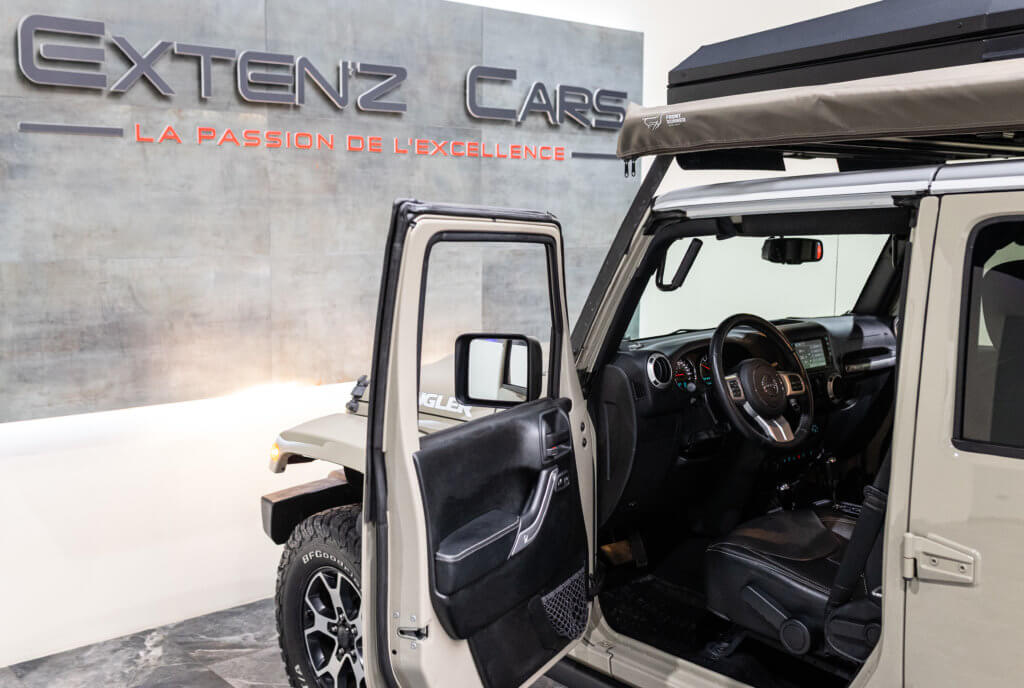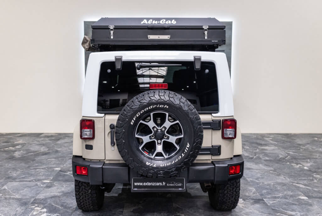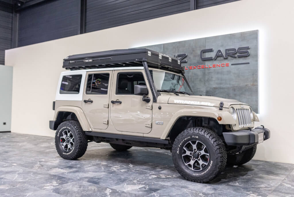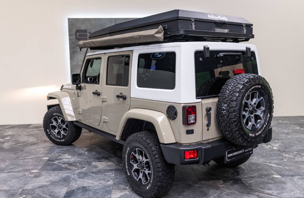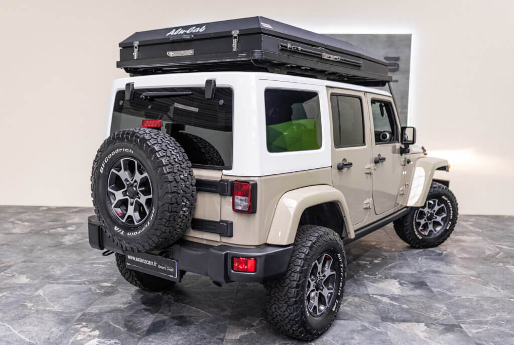 À titre indicatif, une tente de toit Alu-Cab de ce type représente un investissement généralement compris entre 4 000 € et 5 500 €, ajoutant une réelle valeur à cette Wrangler déjà exclusive.