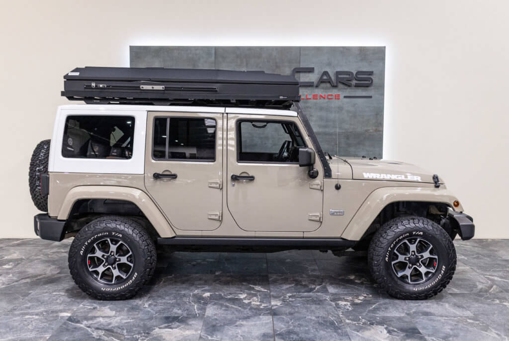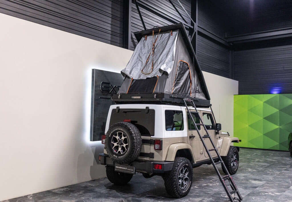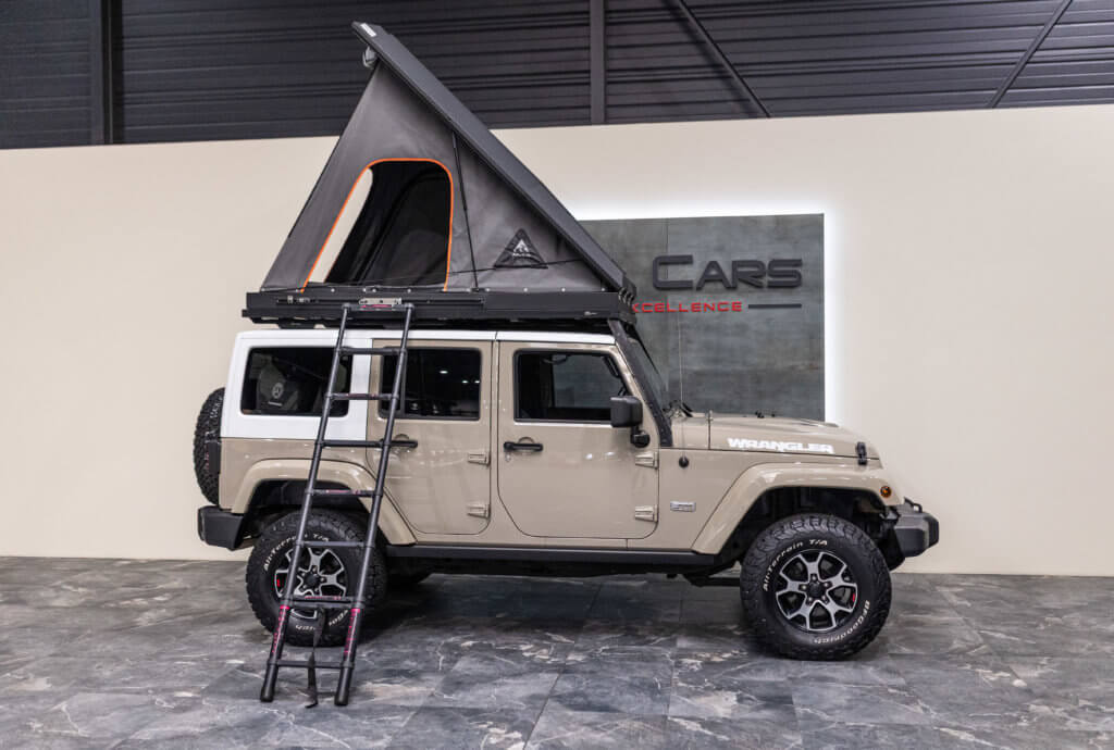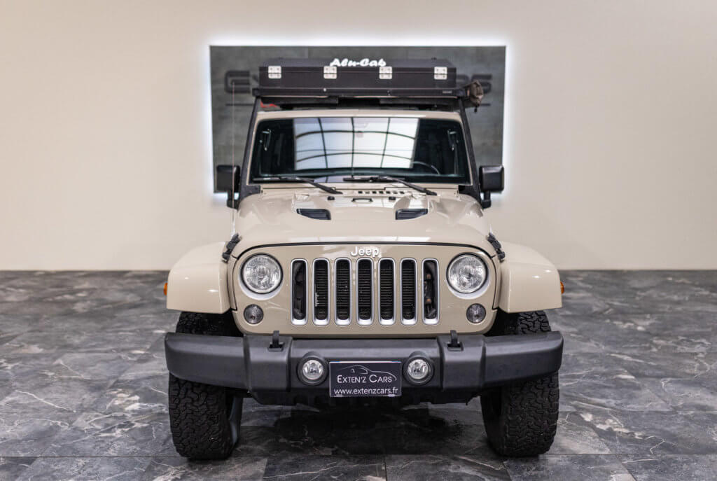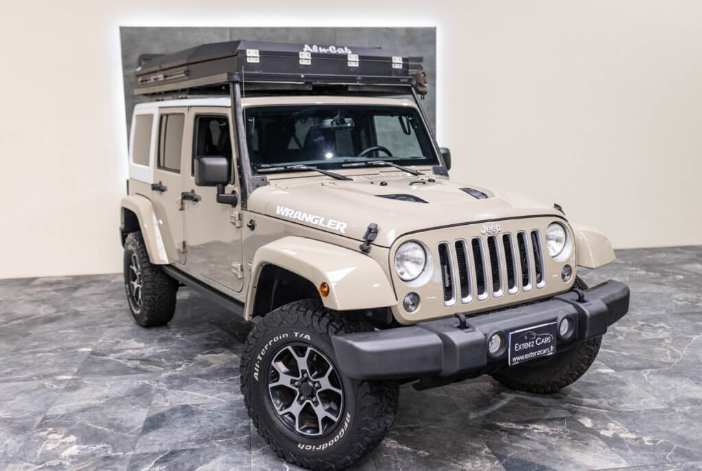 À titre indicatif, une tente de toit Alu-Cab de ce type représente un investissement généralement compris entre 4 000 € et 5 500 €, ajoutant une réelle valeur à cette Wrangler déjà exclusive.