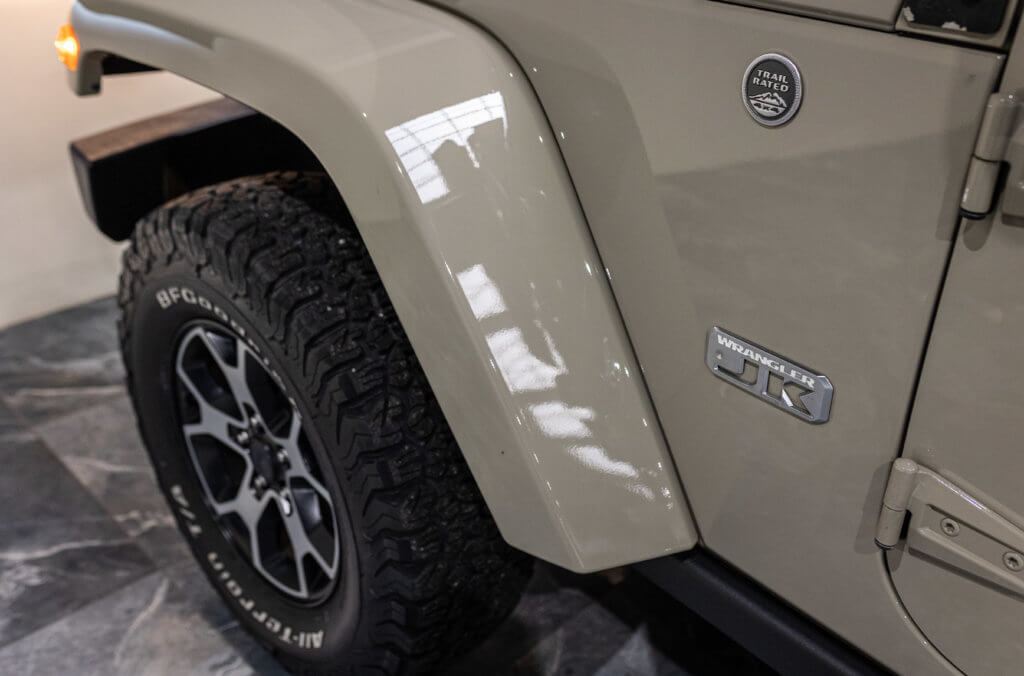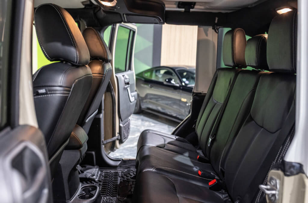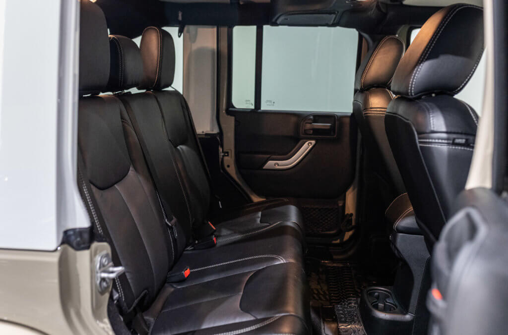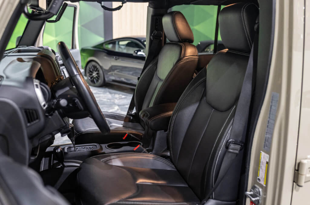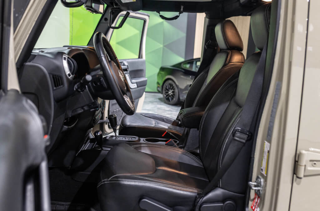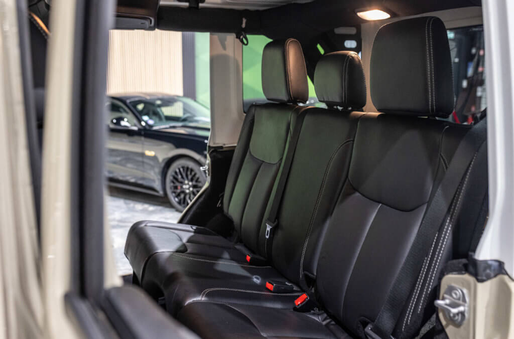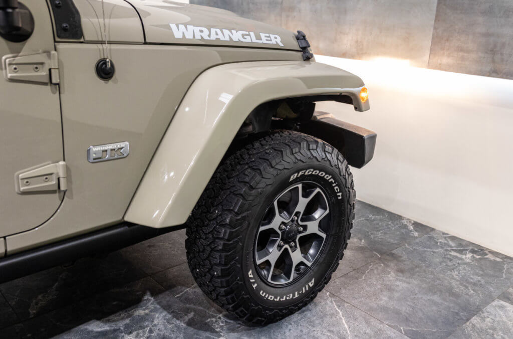 Elle est habillée de la teinte Gobi (code PUA), une superbe couleur sable beige chaud emblématique de l’univers Jeep, cet exemplaire de seconde main se présente dans un excellent état de conservation, aussi bien esthétique que mécanique.