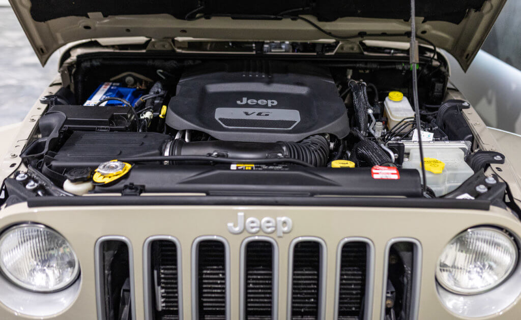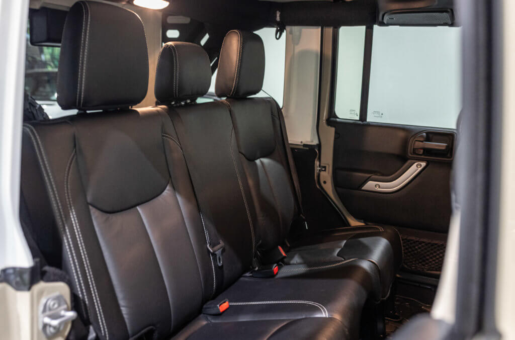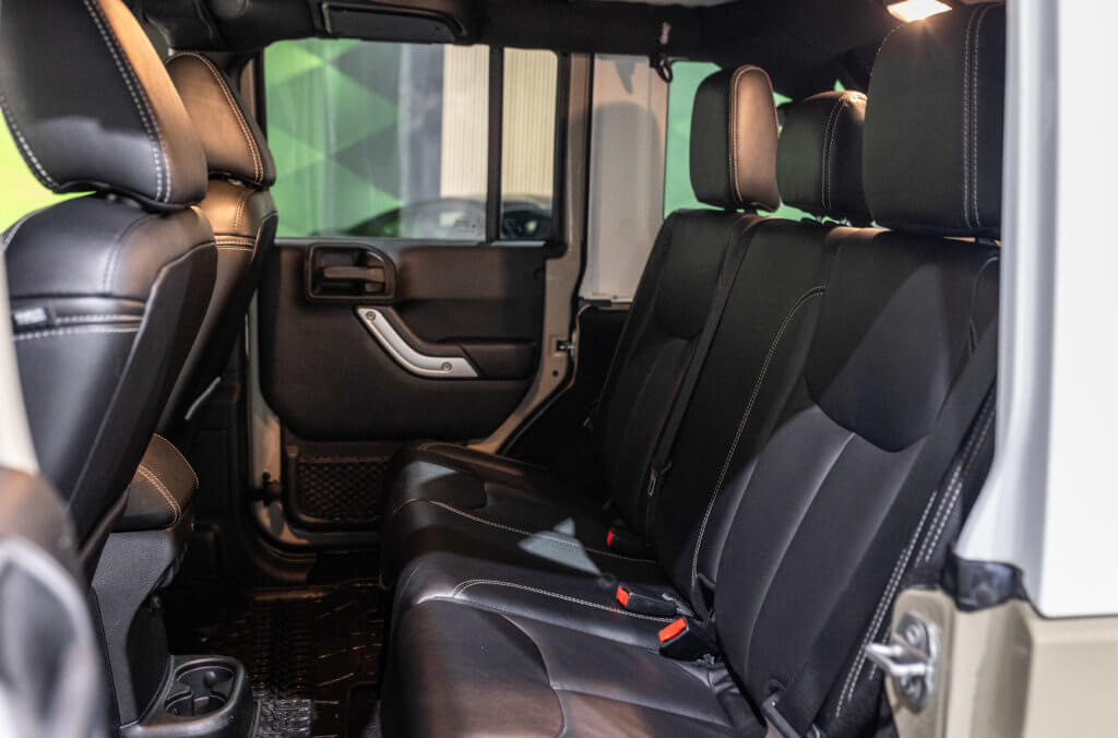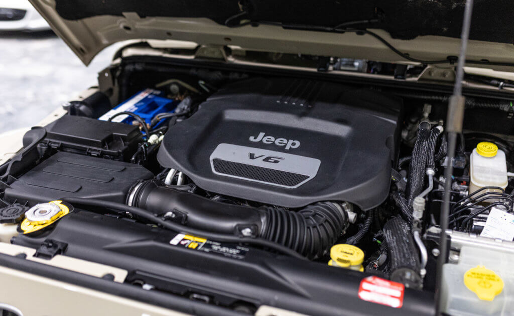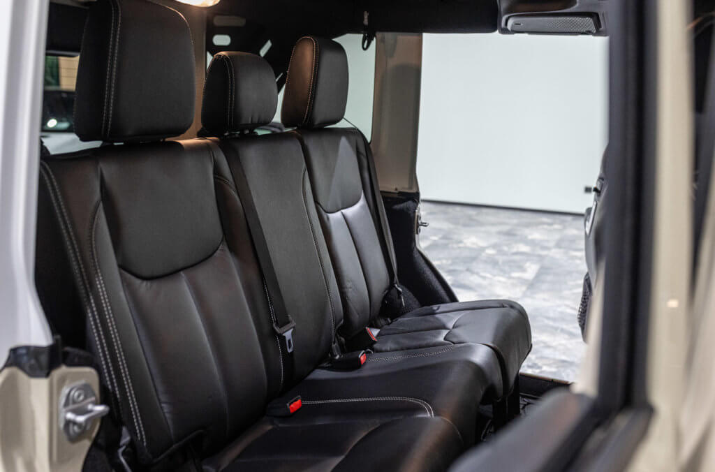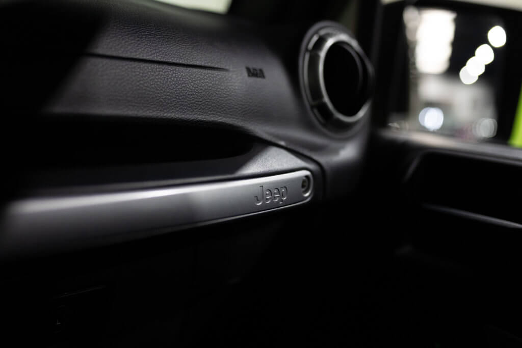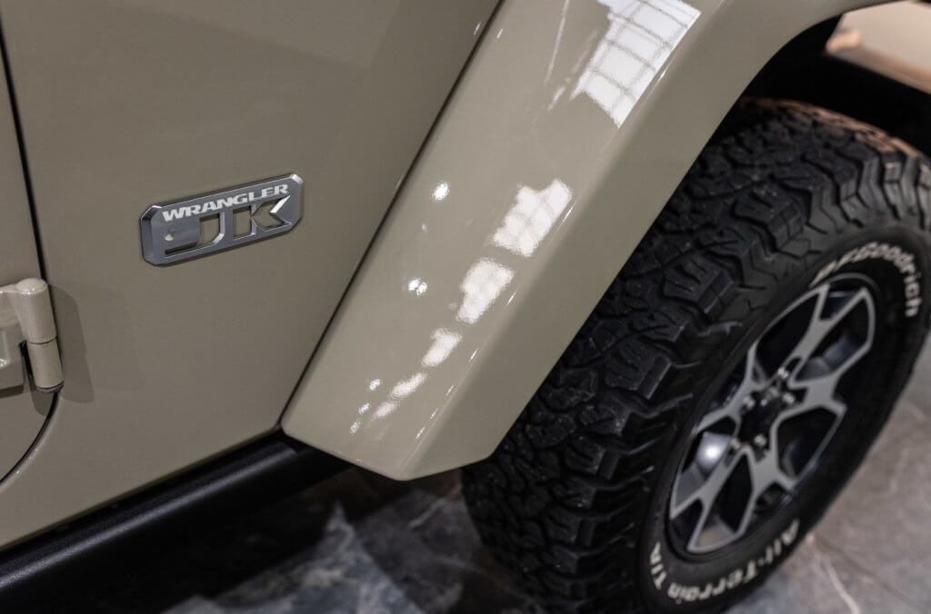 Elle est habillée de la teinte Gobi (code PUA), une superbe couleur sable beige chaud emblématique de l’univers Jeep, cet exemplaire de seconde main se présente dans un excellent état de conservation, aussi bien esthétique que mécanique.