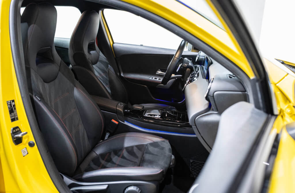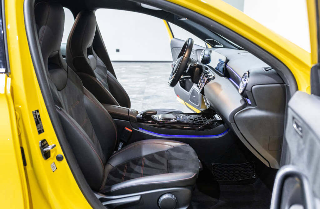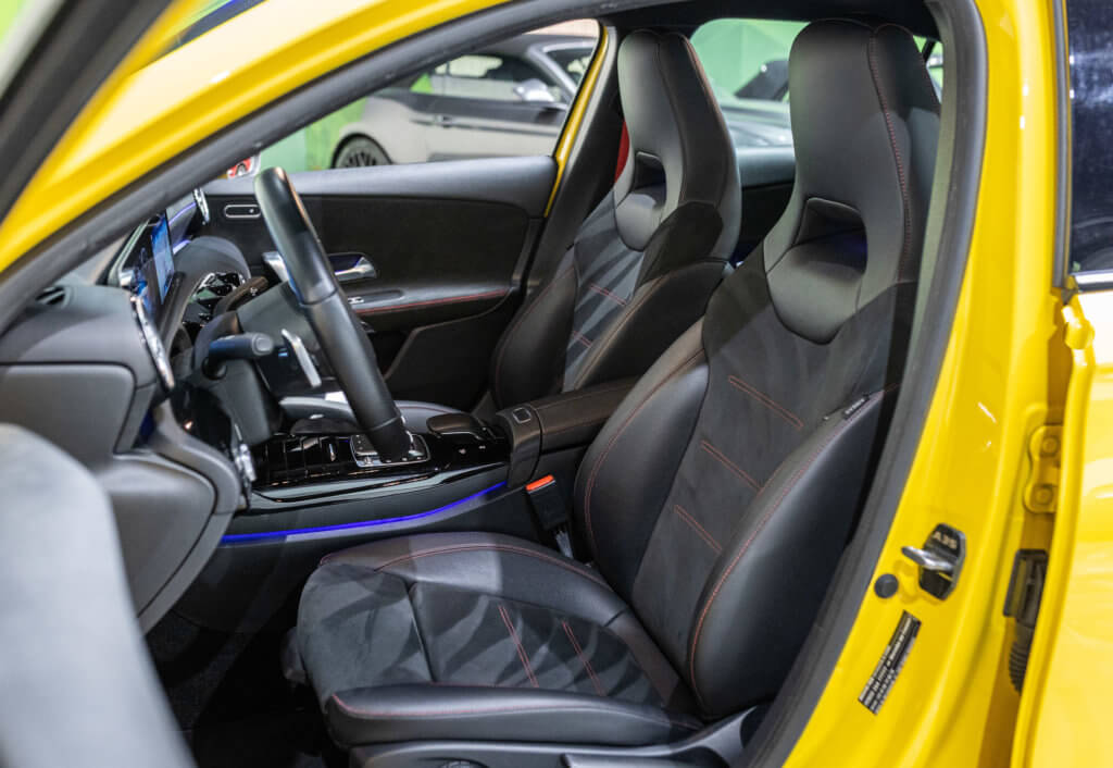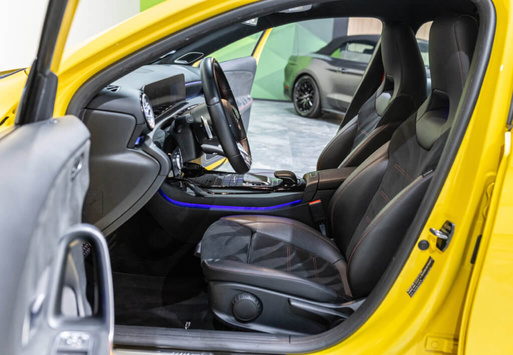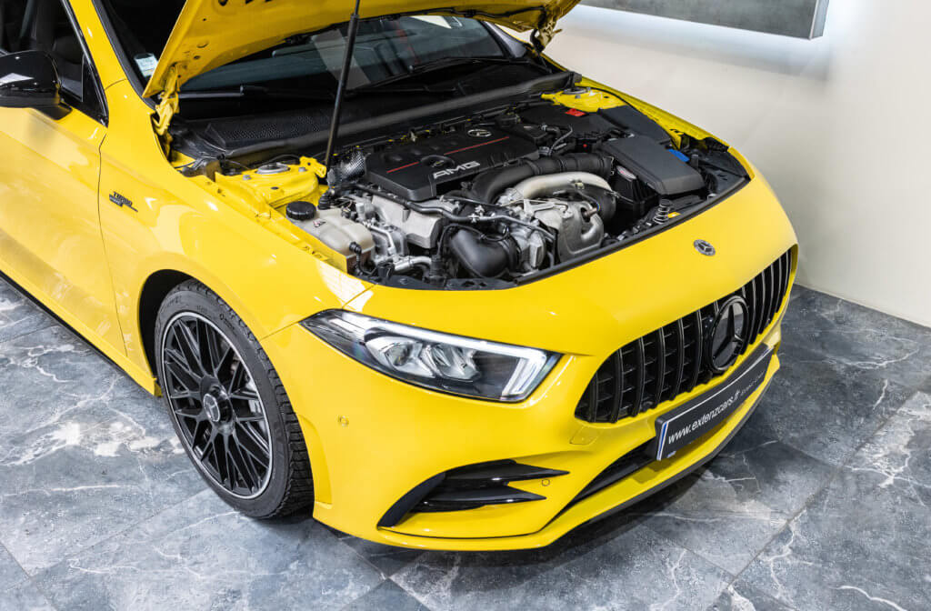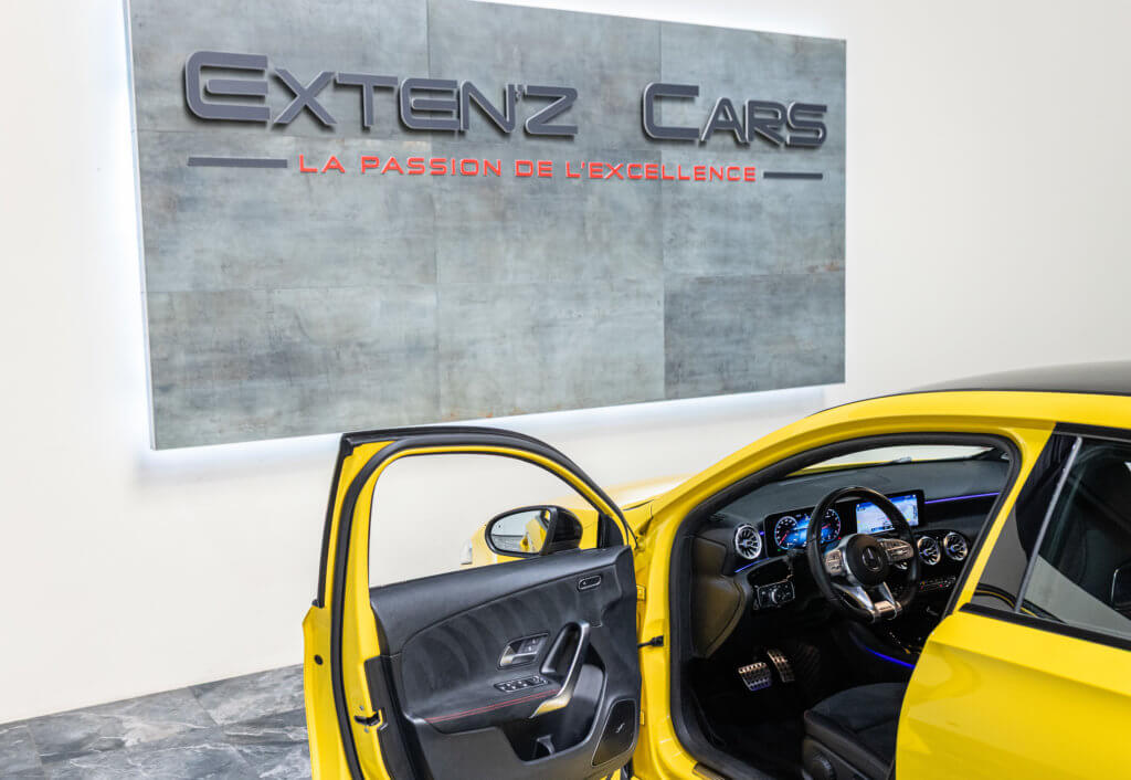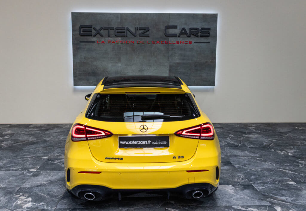 EXTENZ CARS vous propose cette Mercedes A 35 AMG 4MATIC, mise en circulation le 09/08/2019, une compacte sportive au caractère affirmé, alliant performance, technologie et design moderne. Dans cette configuration Jaune Soleil (code 914), associée à des éléments noir brillant, elle offre une présentation à la fois sportive et dynamique, avec une vraie présence sur la route. La A35 AMG incarne parfaitement le savoir-faire AMG dans un format compact, offrant un excellent compromis entre usage quotidien et plaisir de conduite. Sous le capot, le 4 cylindres 2.0 turbo développe 306 CV (20cv), avec une belle réactivité et des performances largement suffisantes pour se faire plaisir. Associé à la transmission intégrale 4MATIC et à la boîte automatique, l’ensemble reste à la fois efficace et agréable à utiliser au quotidien.