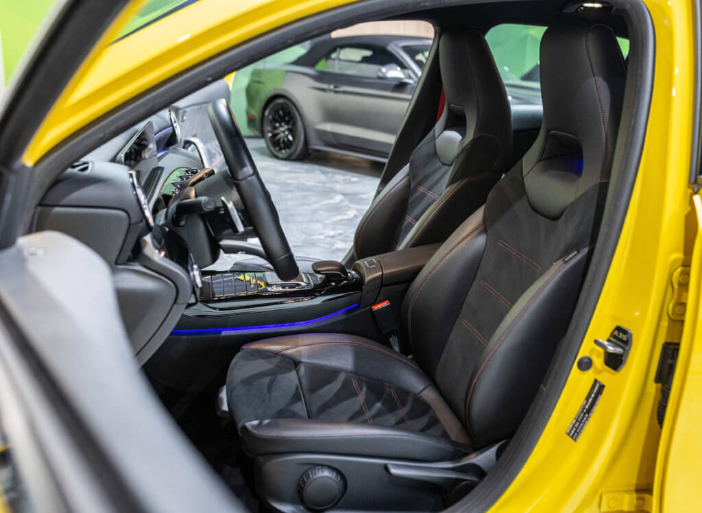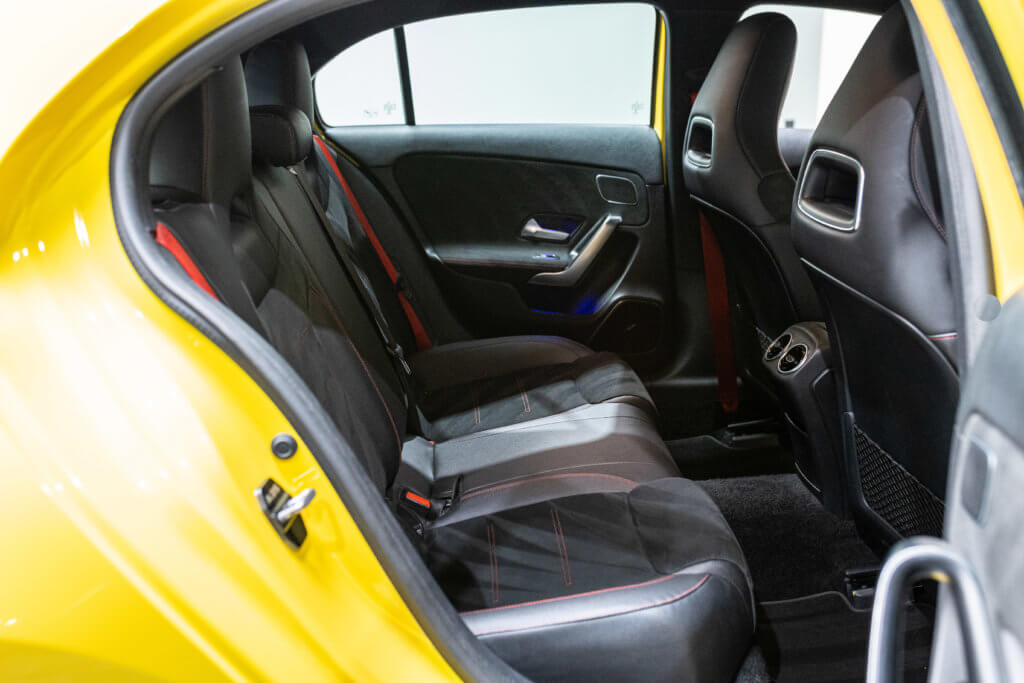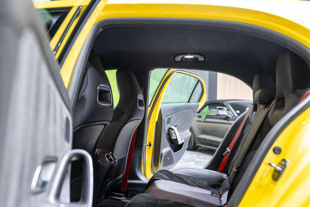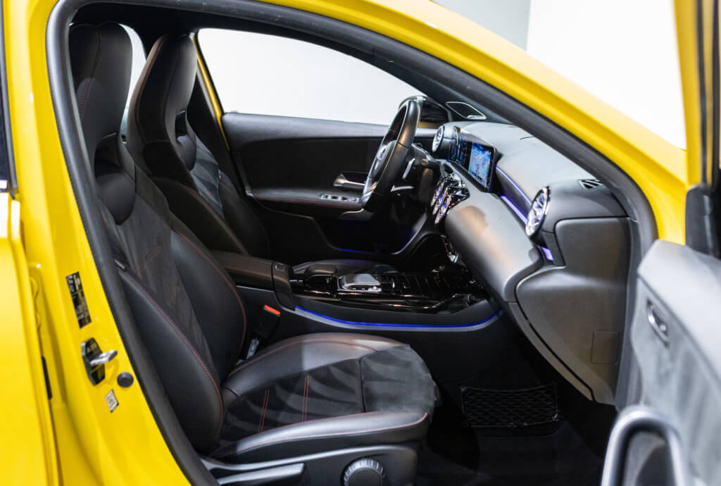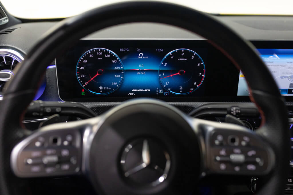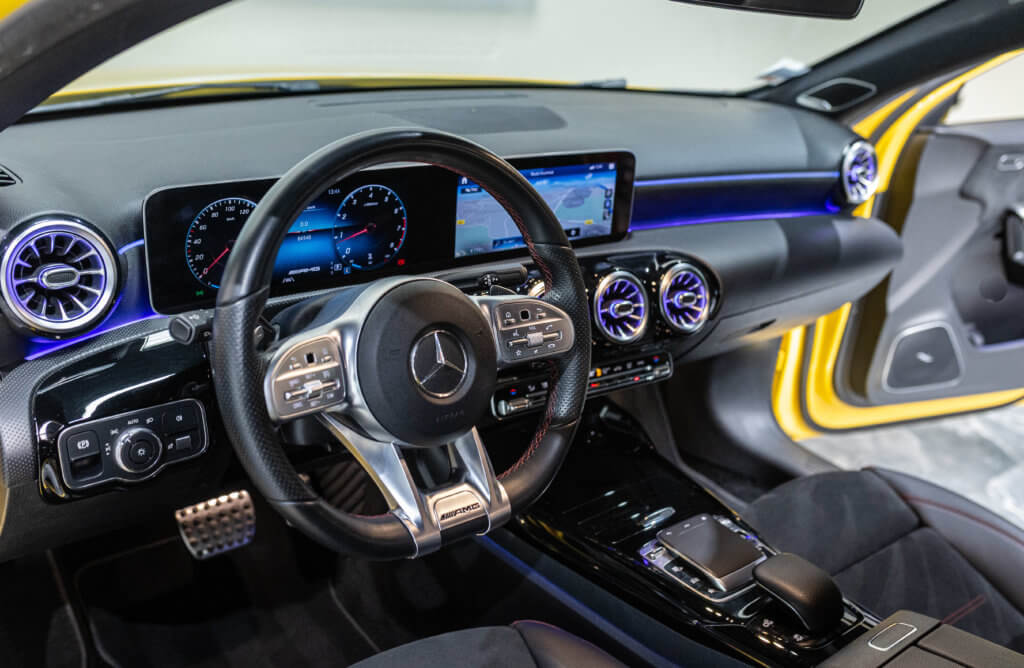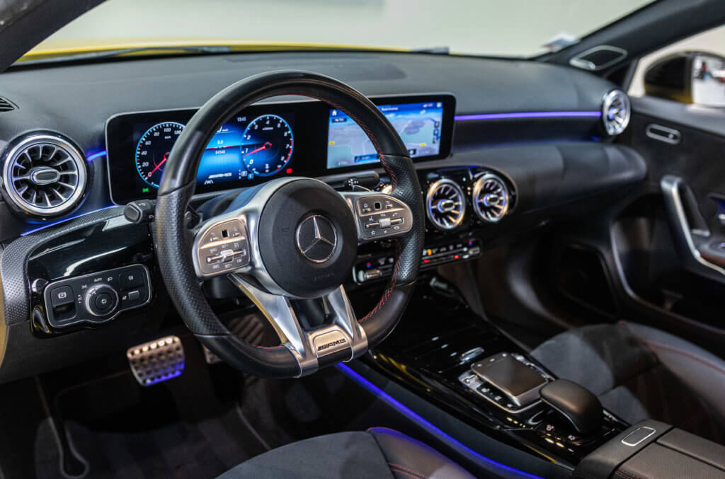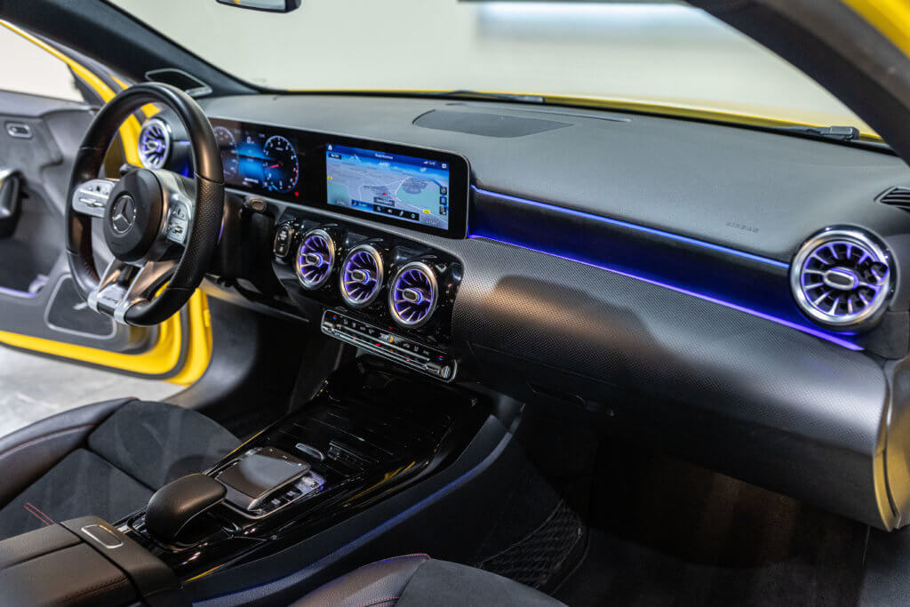 EXTENZ CARS vous propose cette Mercedes A 35 AMG 4MATIC, mise en circulation le 09/08/2019, une compacte sportive au caractère affirmé, alliant performance, technologie et design moderne. Dans cette configuration Jaune Soleil (code 914), associée à des éléments noir brillant, elle offre une présentation à la fois sportive et dynamique, avec une vraie présence sur la route. La A35 AMG incarne parfaitement le savoir-faire AMG dans un format compact, offrant un excellent compromis entre usage quotidien et plaisir de conduite. Sous le capot, le 4 cylindres 2.0 turbo développe 306 CV (20cv), avec une belle réactivité et des performances largement suffisantes pour se faire plaisir. Associé à la transmission intégrale 4MATIC et à la boîte automatique, l’ensemble reste à la fois efficace et agréable à utiliser au quotidien.