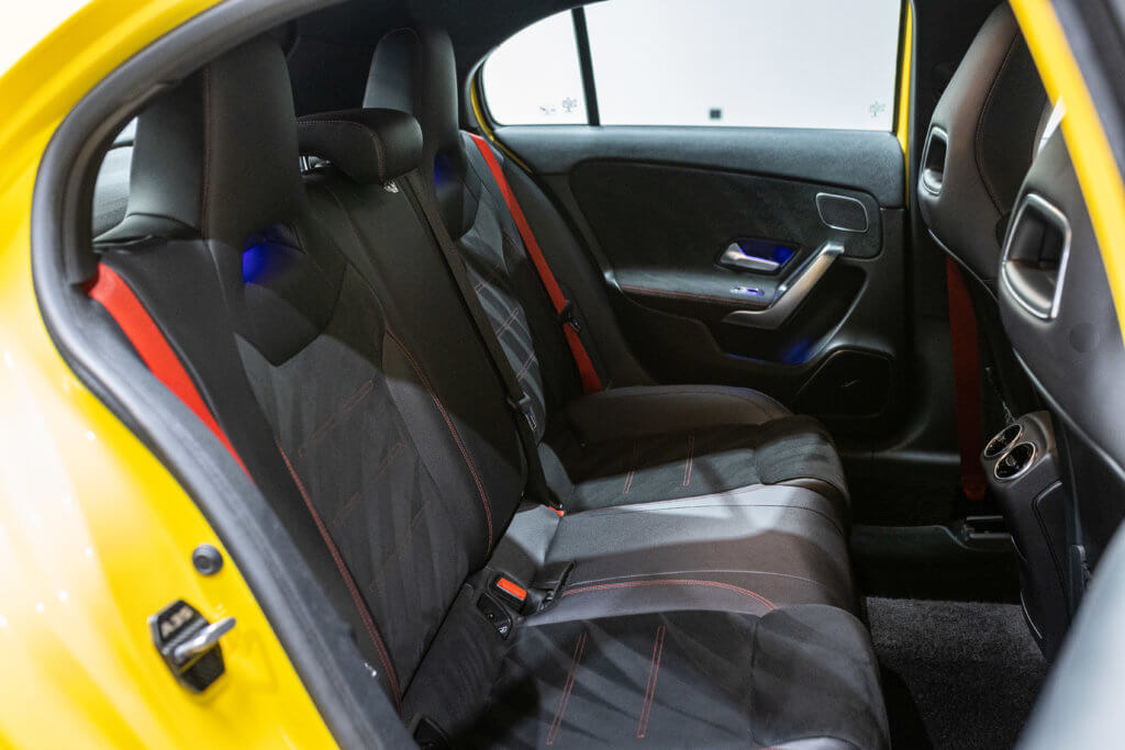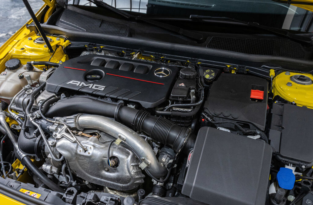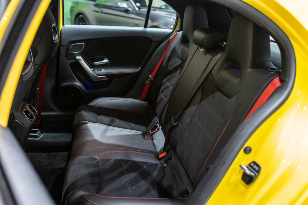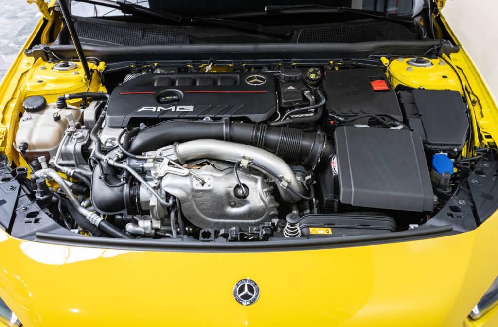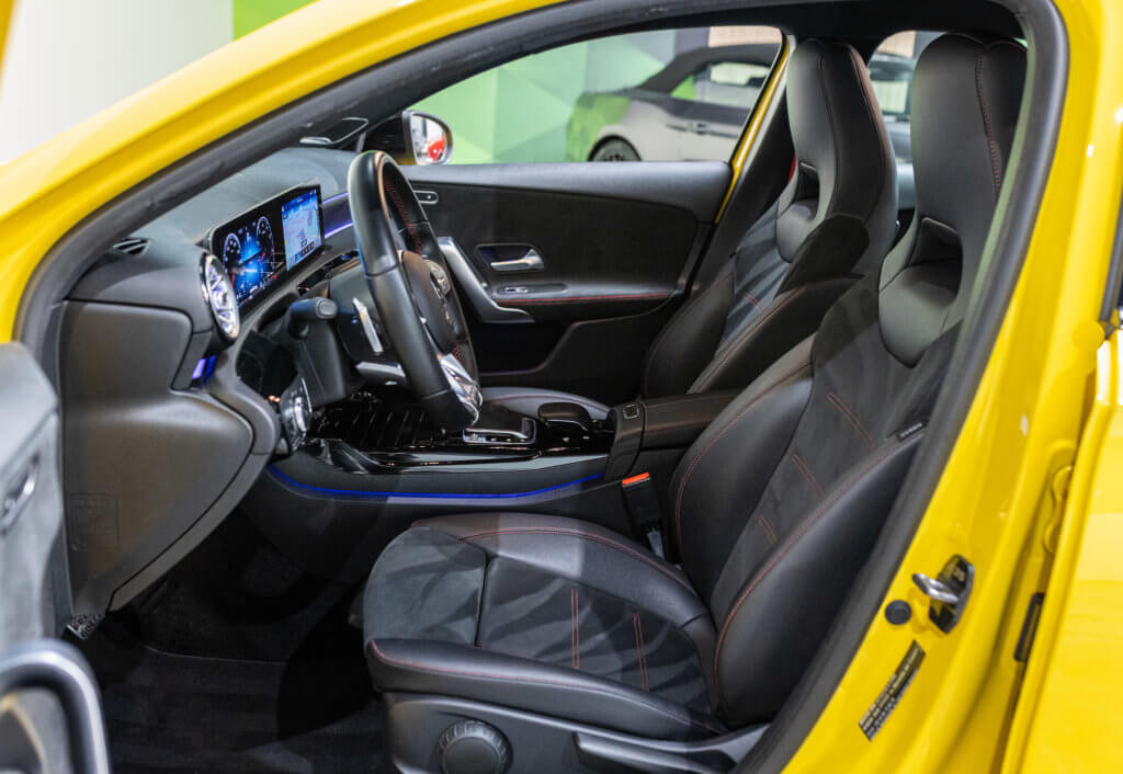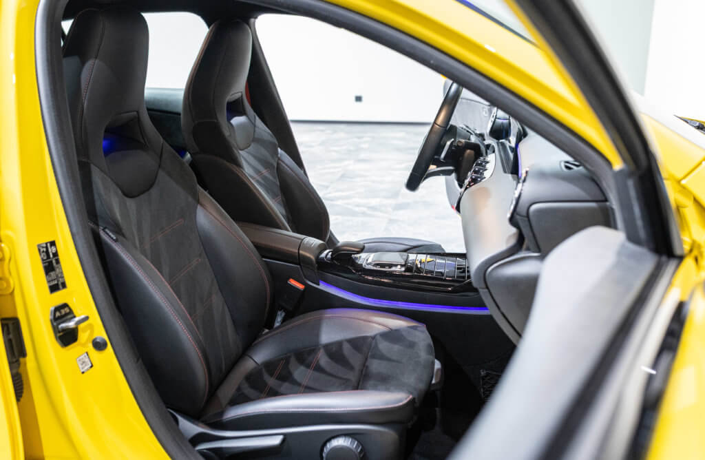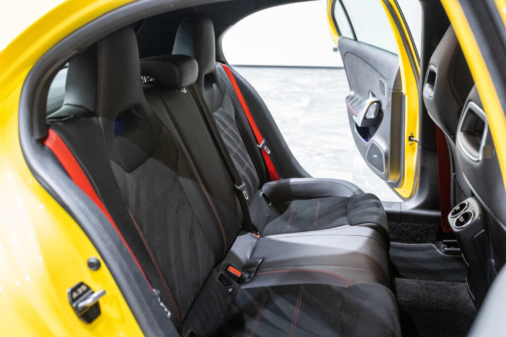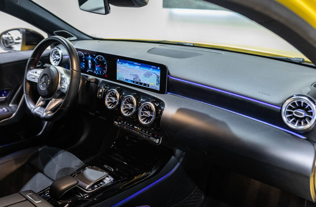 EXTENZ CARS vous propose cette Mercedes A 35 AMG 4MATIC, mise en circulation le 09/08/2019, une compacte sportive au caractère affirmé, alliant performance, technologie et design moderne. Dans cette configuration Jaune Soleil (code 914), associée à des éléments noir brillant, elle offre une présentation à la fois sportive et dynamique, avec une vraie présence sur la route. La A35 AMG incarne parfaitement le savoir-faire AMG dans un format compact, offrant un excellent compromis entre usage quotidien et plaisir de conduite. Sous le capot, le 4 cylindres 2.0 turbo développe 306 CV (20cv), avec une belle réactivité et des performances largement suffisantes pour se faire plaisir. Associé à la transmission intégrale 4MATIC et à la boîte automatique, l’ensemble reste à la fois efficace et agréable à utiliser au quotidien.