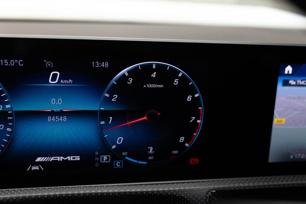 Elle affiche aujourd’hui 84 000 km et se présente dans un excellent état de conservation, à la hauteur de ce que l’on attend d’une Mercedes de ce standing.