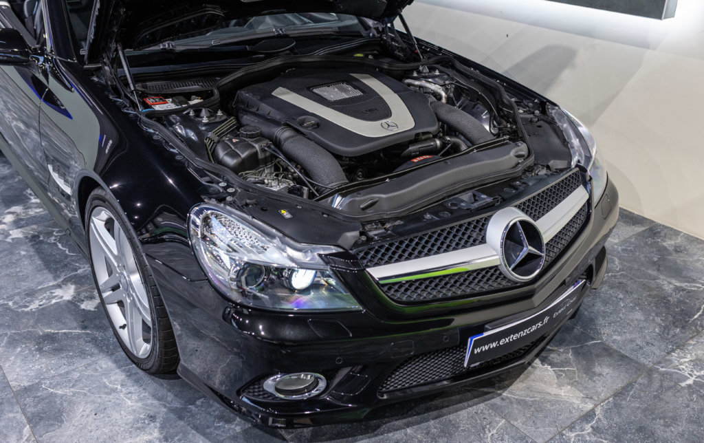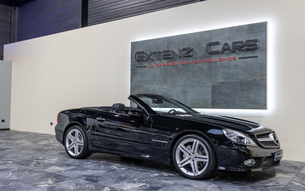 EXTEN’Z CARS vous propose ce Cabriolet Mercedes SL 300 Pack AMG avec son V6 3.0 développant 231 CV (15v), mise en circulation le 19/11/2008, de couleur Noir obsidienne. Laissez-vous séduire par cette Mercedes SL. Le confort est naturellement le point fort de ce modèle. La suspension filtre efficacement les chaos et l’insonorisation est parfaite, la position de conduite est irréprochable, grâce notamment aux nombreux réglages disponibles. Mais une SL, par tradition, c’est indémodable…, avec un V6 aussi plantureux que plaisant.