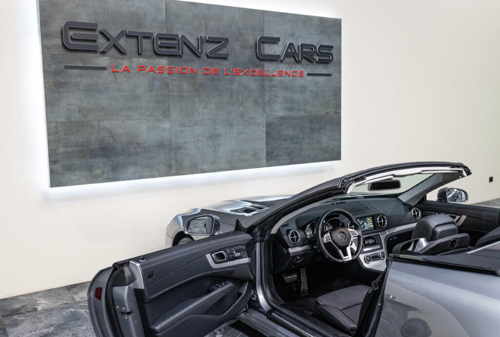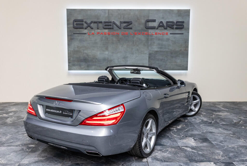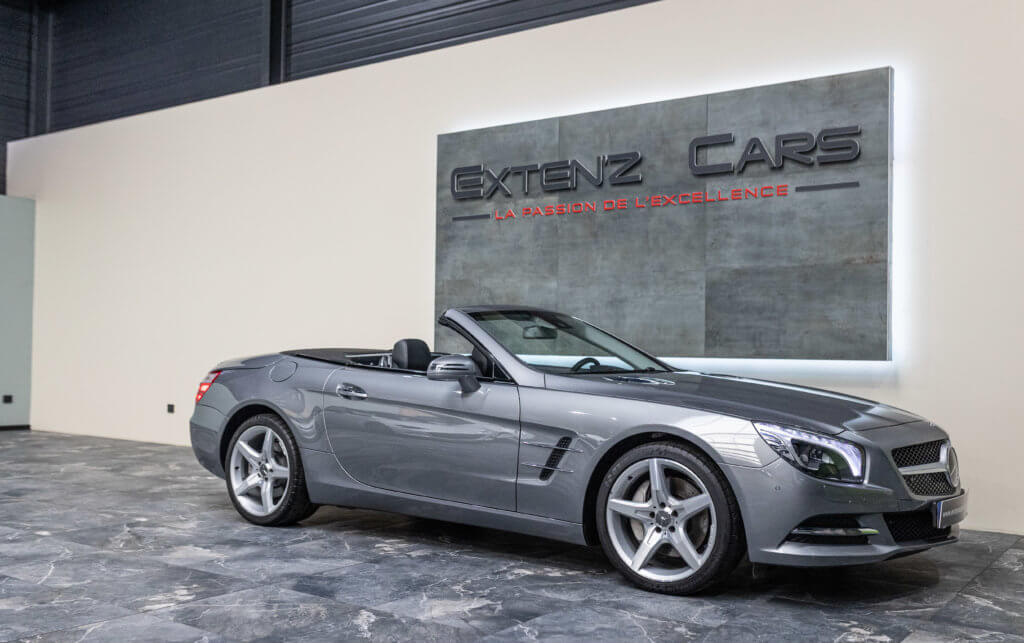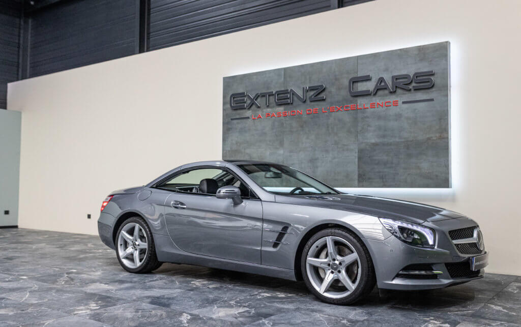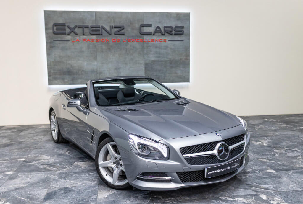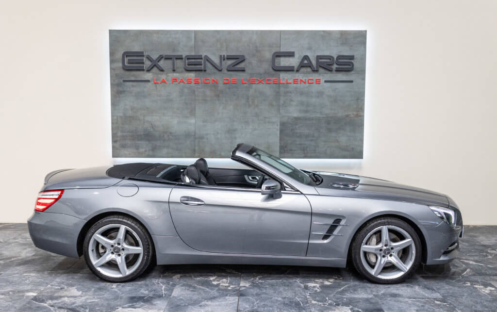 EXTEN’Z CARS vous propose ce Cabriolet Mercedes SL 350 BlueEFFICIENCY avec son V6 développant 306 CV (20cv), mise en circulation le 23/04/2014, de couleur Gris Palladium métallisée. Laissez-vous séduire par cette Mercedes SL, une icône d’élégance et de puissance, qui incarne l’excellence automobile. Préparez-vous à vivre chaque trajet comme une expérience unique, dans un véhicule où chaque détail est une promesse d’excellence. Un véhicule offrant une harmonie parfaite entre confort suprême, performance dynamique et innovation technologique. Le confort est naturellement le point fort de ce modèle, grâce au chauffage de nuque, de siège, au pare-vent et à l’isolation étudiée, votre bien-être thermique sera assuré.