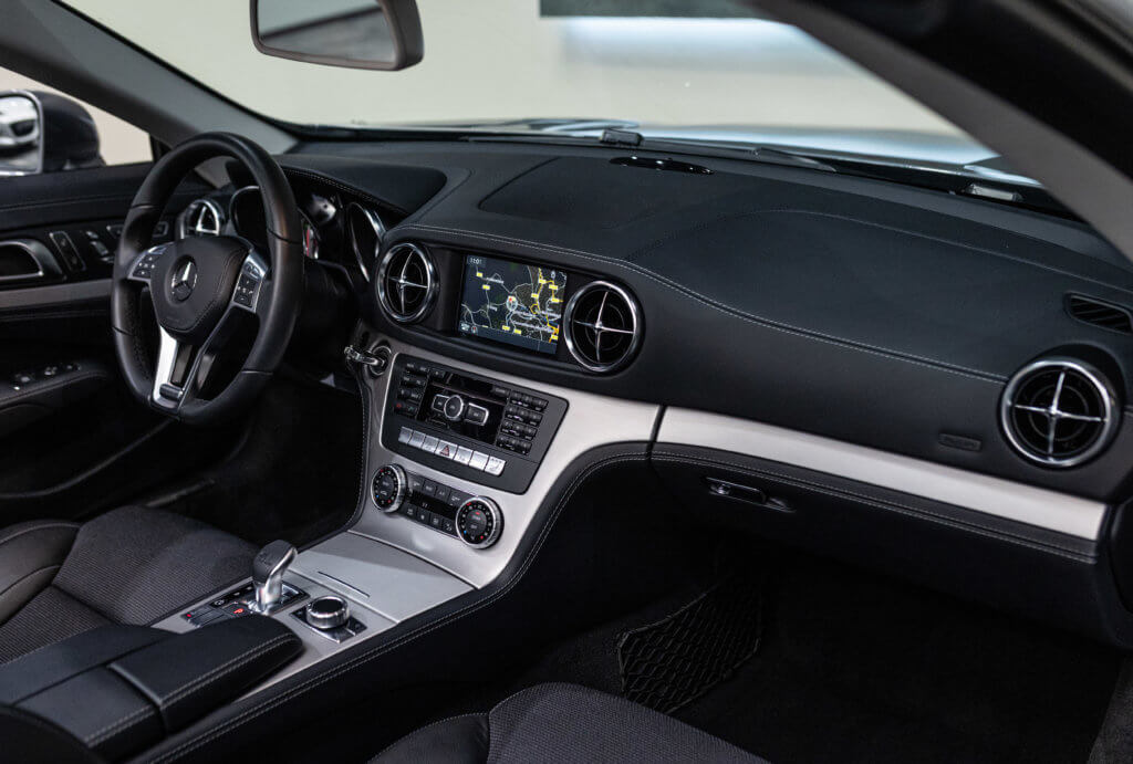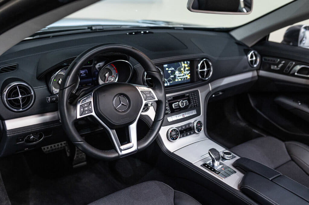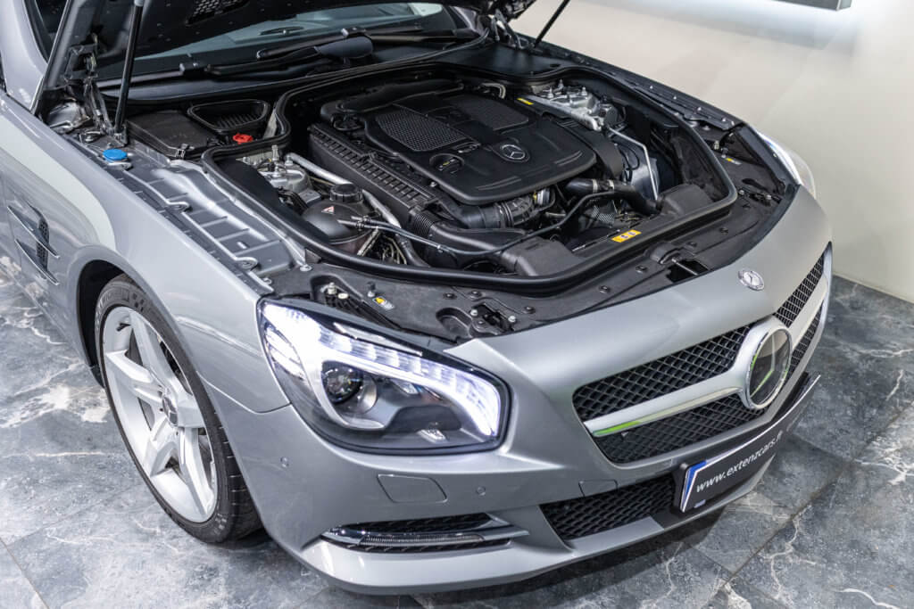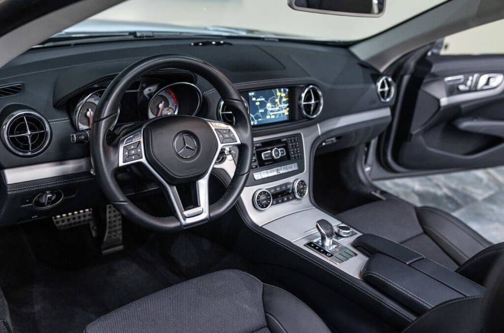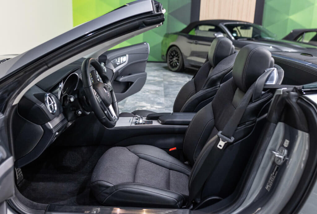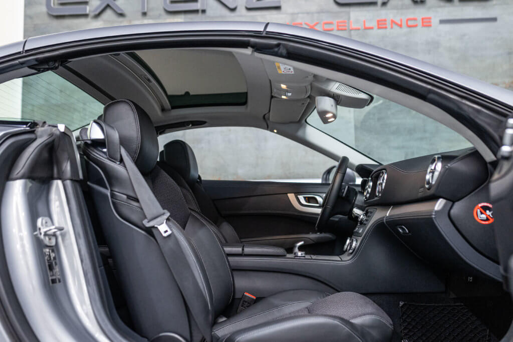 EXTEN’Z CARS vous propose ce Cabriolet Mercedes SL 350 BlueEFFICIENCY avec son V6 développant 306 CV (20cv), mise en circulation le 23/04/2014, de couleur Gris Palladium métallisée. Laissez-vous séduire par cette Mercedes SL, une icône d’élégance et de puissance, qui incarne l’excellence automobile. Préparez-vous à vivre chaque trajet comme une expérience unique, dans un véhicule où chaque détail est une promesse d’excellence. Un véhicule offrant une harmonie parfaite entre confort suprême, performance dynamique et innovation technologique. Le confort est naturellement le point fort de ce modèle, grâce au chauffage de nuque, de siège, au pare-vent et à l’isolation étudiée, votre bien-être thermique sera assuré.