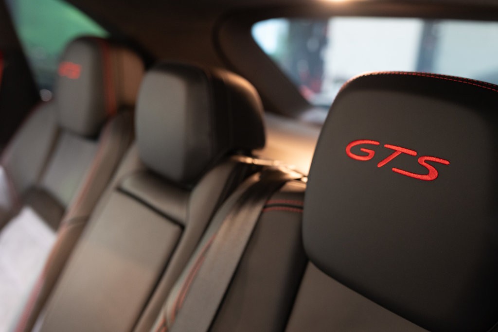 – Sellerie Sport GTS en Cuir/Alcantara avec Surpiqure Rouge Carmin et Broderie GTS sur les Appuies Têtes (2480€)